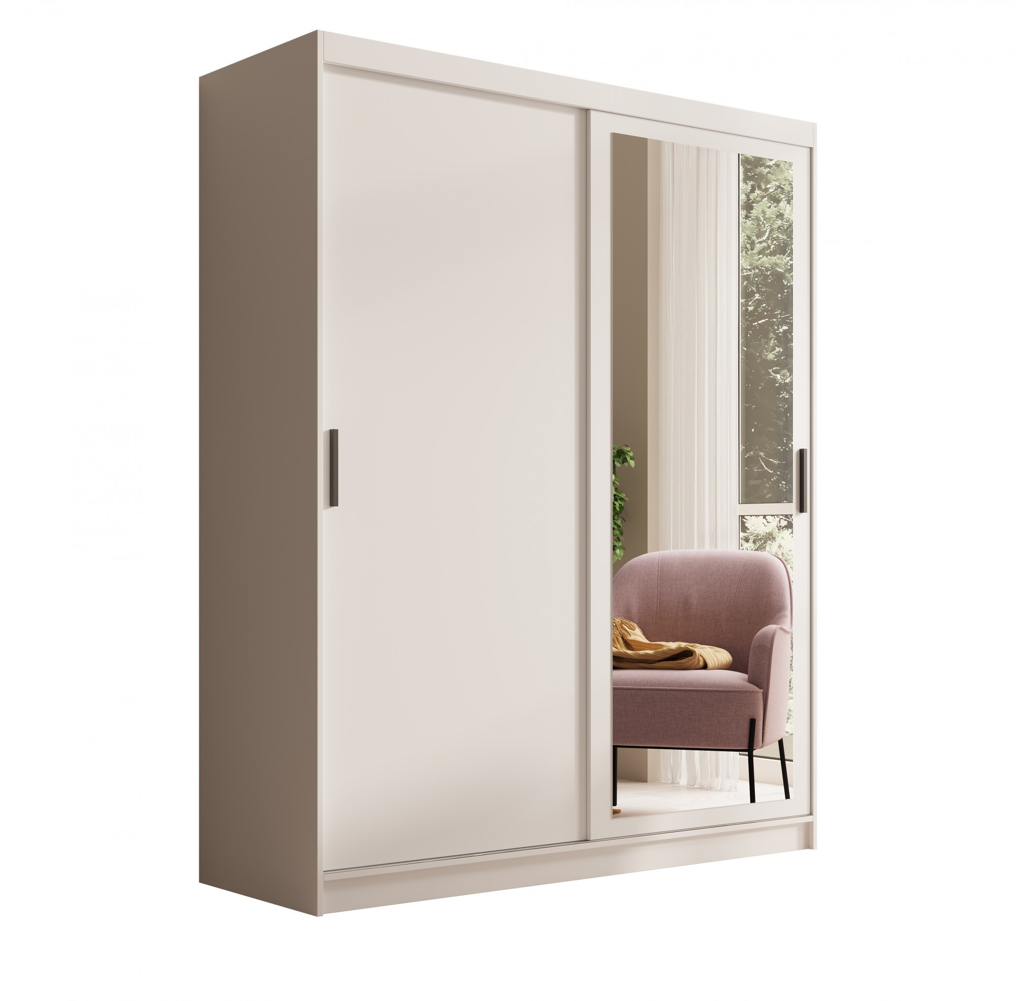 Šatní skříň s posuvnými dveřmi a zrcadlem Hailey 160 Bílá+Bílá