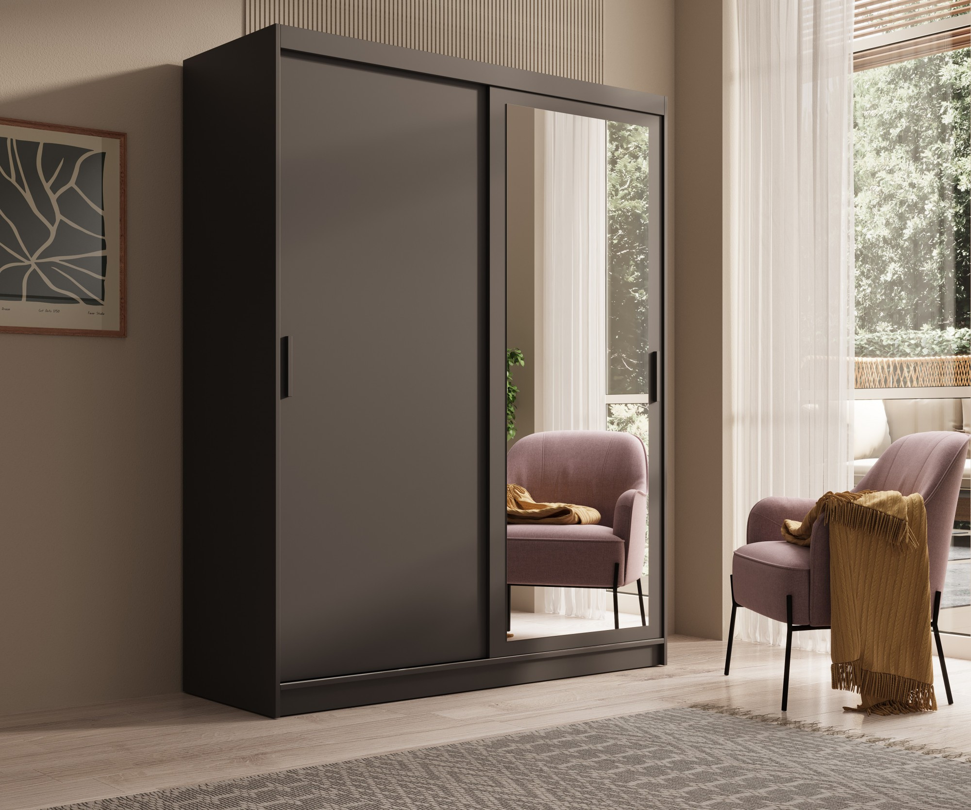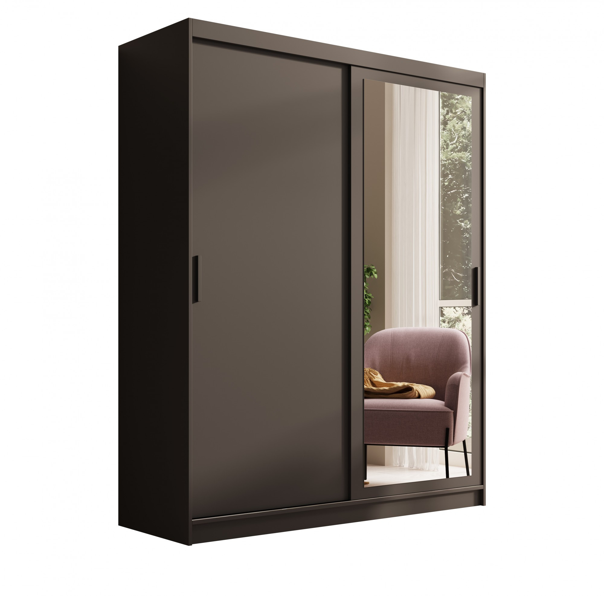 Šatní skříň s posuvnými dveřmi a zrcadlem Hailey 160 Černá+Černá