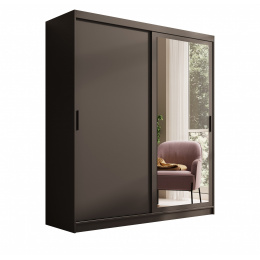 Šatní skříň s posuvnými dveřmi a zrcadlem Hailey 180 Černá+Černá