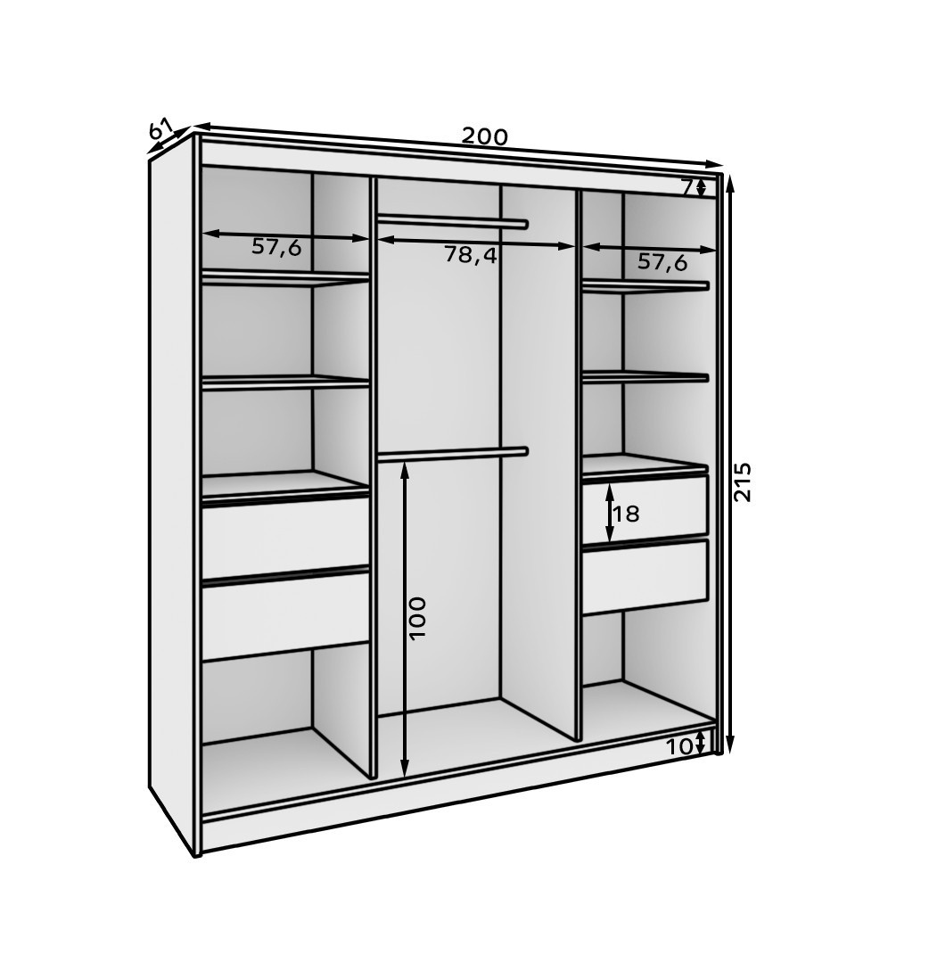 Šatní skříň s posuvnými dveřmi a zrcadlem Ida 200 Bílá+Bílá
