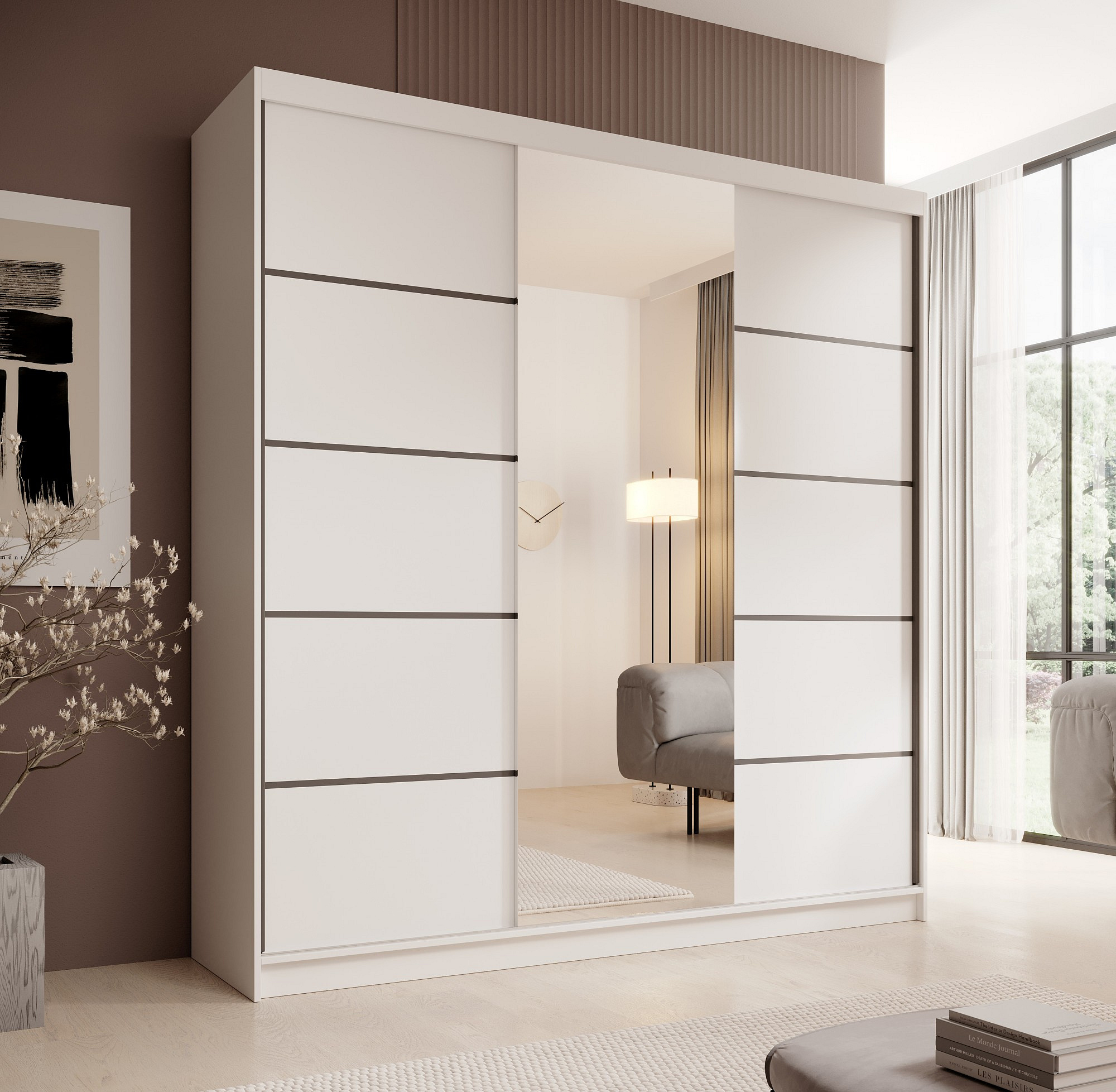 Skříň Sonic se zrcadlem 200 je moderní a funkční nábytek ideální do ložnice, šatny nebo předsíně. Má posuvné dveře, které usnadňují každodenní používání a umožňují ušetřit místo v místnosti. Centrálně umístěné velké zrcadlo nejen opticky zvětšuje prostor, ale také plní praktickou funkci, usnadňuje každodenní přípravy na odchod. Skříň Sonic spojuje estetiku s praktičností, nabízí prostorný interiér s policemi a tyčí na oblečení, což z ní činí vynikající volbu pro moderní interiéry.