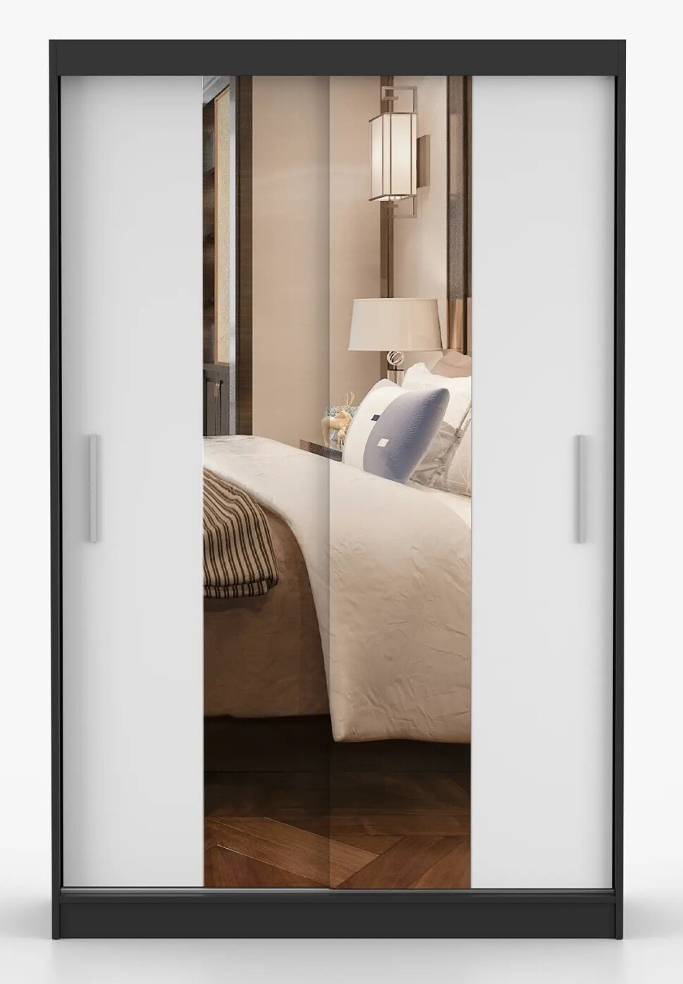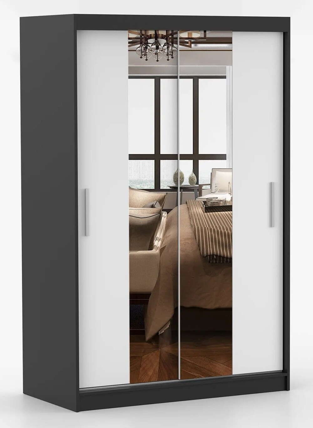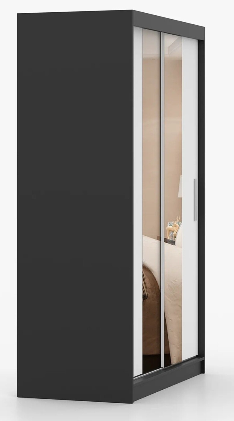 Šatní skříň se zrcadlem NOEMI 01, Černá/Bílá