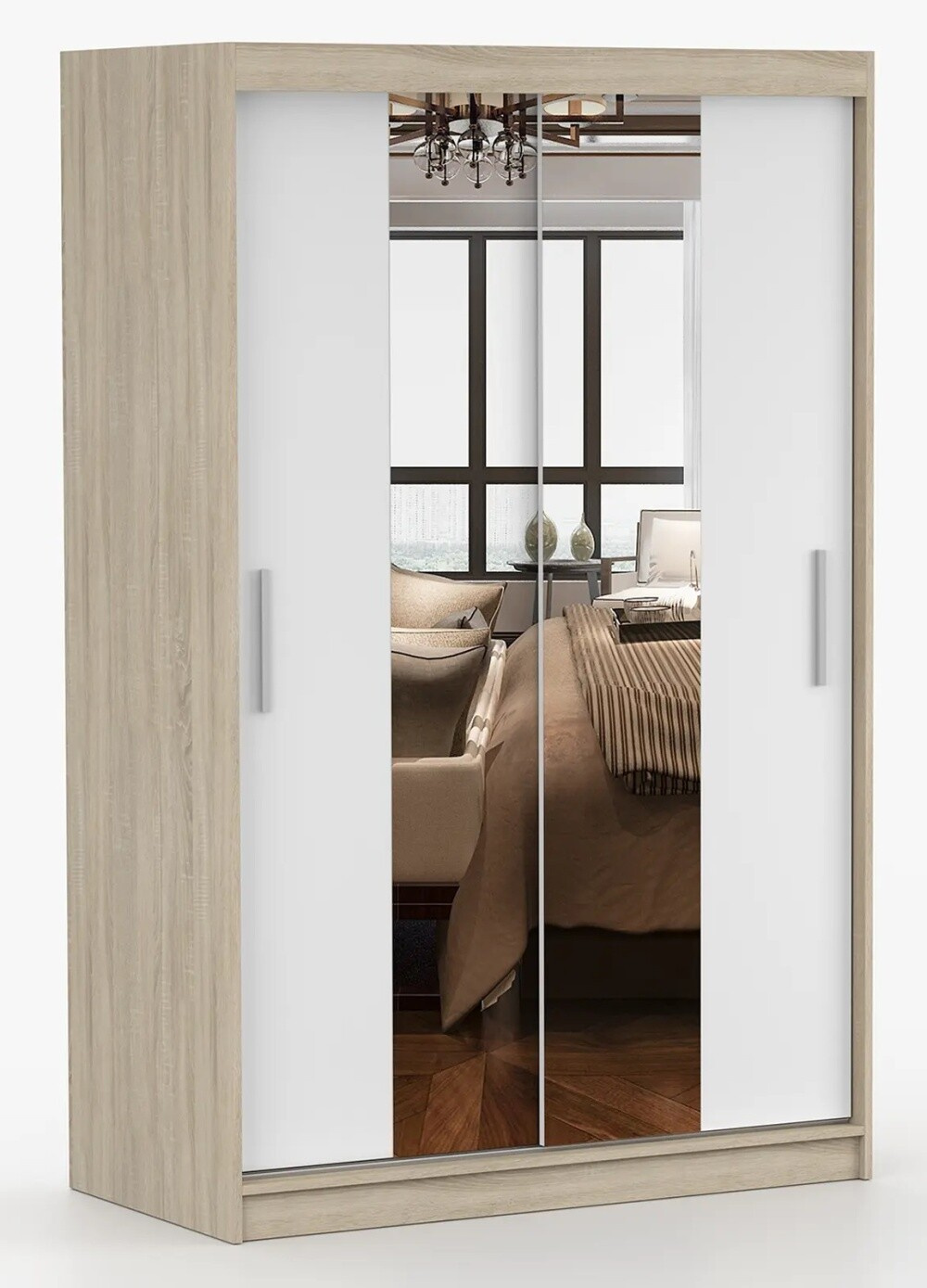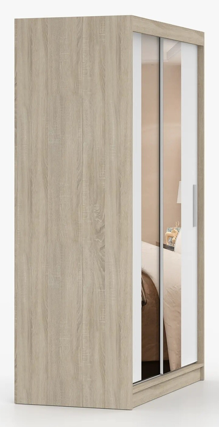 Šatní skříň se zrcadlem NOEMI 01, Dub Sonoma/Bílá