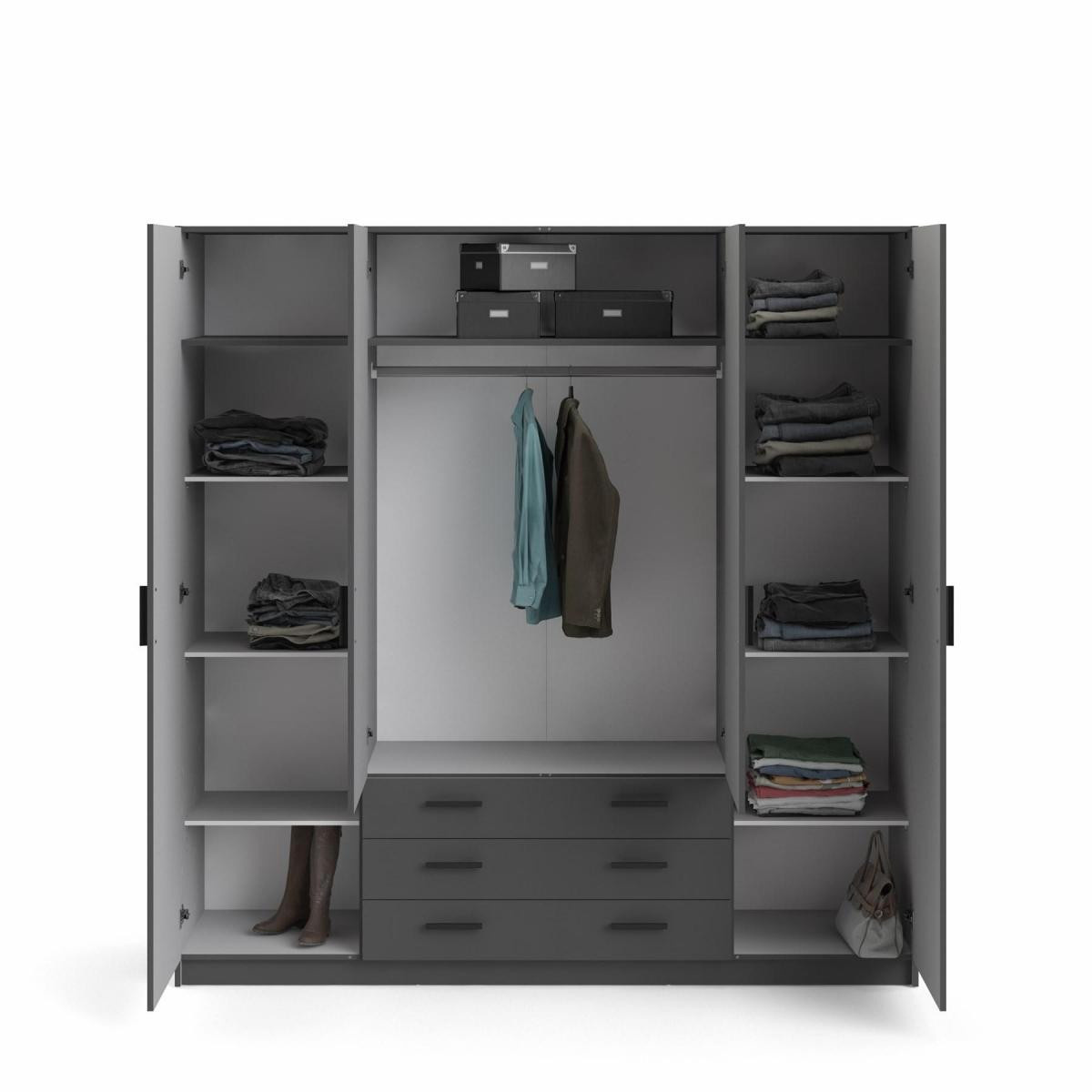 Šatní skříň Spike je vyrobená z lamina, má kvalitní zpracování, je vyráběná v souladu s ohledy na životní prostředí a navíc je praktická a funkční. Nabízí dostatek úložného prostoru a univerzální využití. Výborně se hodí např. do ložnice, do dětského i studentského pokoje, ale i do pracovny či předsíně. Skříň je vyrobená v jednoduchém a nadčasovém skandinávském stylu. Má rovné a čisté linie, které vytvoří útulný, pohodový a příjemný interiér. Skříň je také vybavena praktickými zásuvkami, které můžete využít např.na spodní prádlo. Je dodávaná v demontu. Součástí balení je montážní návod včetně všech spojovacích prvků. Vyobrazené doplňky a dekorace nejsou v ceně.