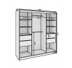 Šatní skříň Tola 200 s posuvnými dveřmi a zrcadly je ideálním řešením pro ty, kteří oceňují spojení moderního designu s praktičností. Díky šířce 200 cm a prostorné konstrukci nabízí výjimečnou kapacitu, která umožňuje uspořádání šatníku, ložního prádla či jiných nezbytných předmětů.