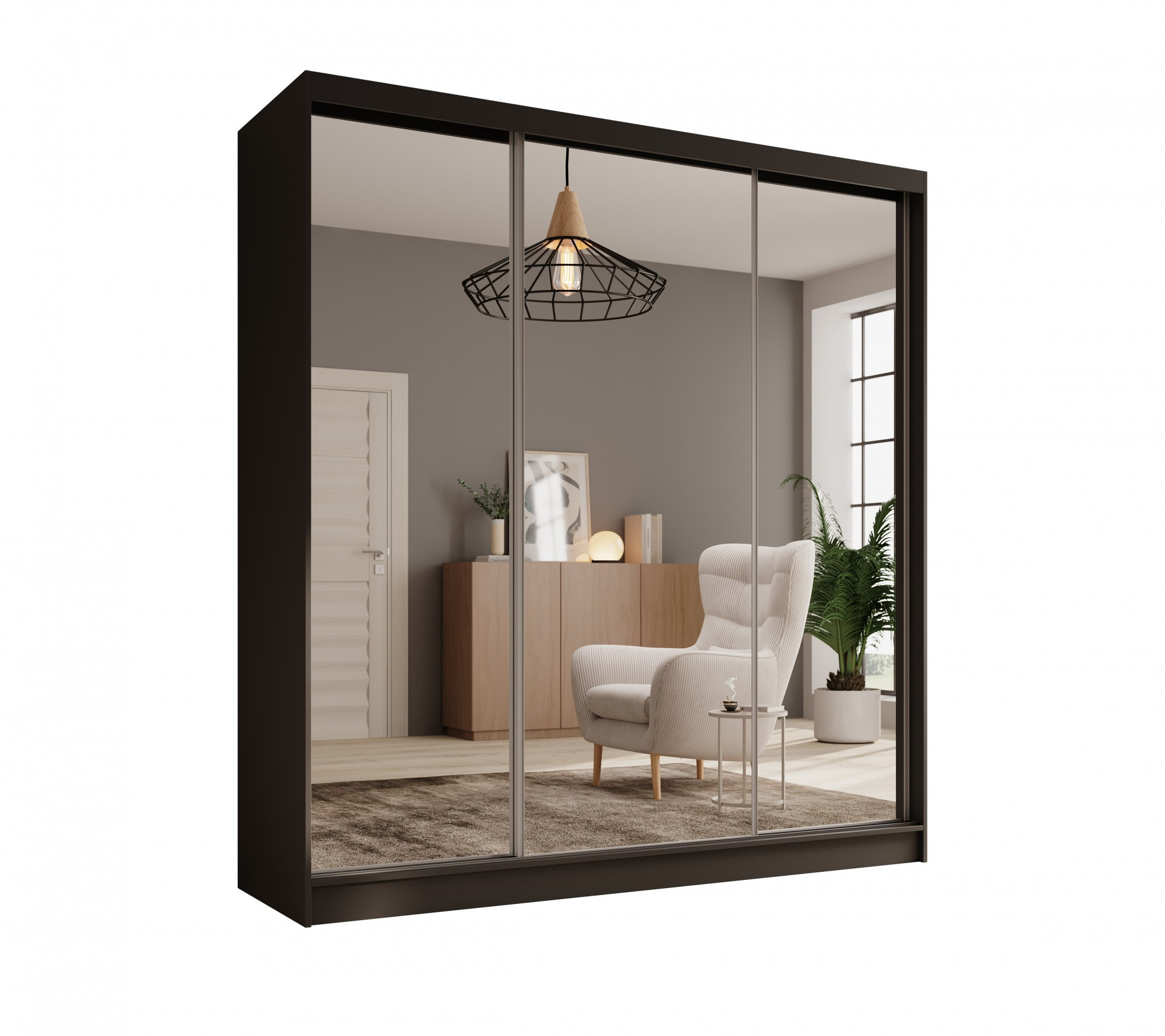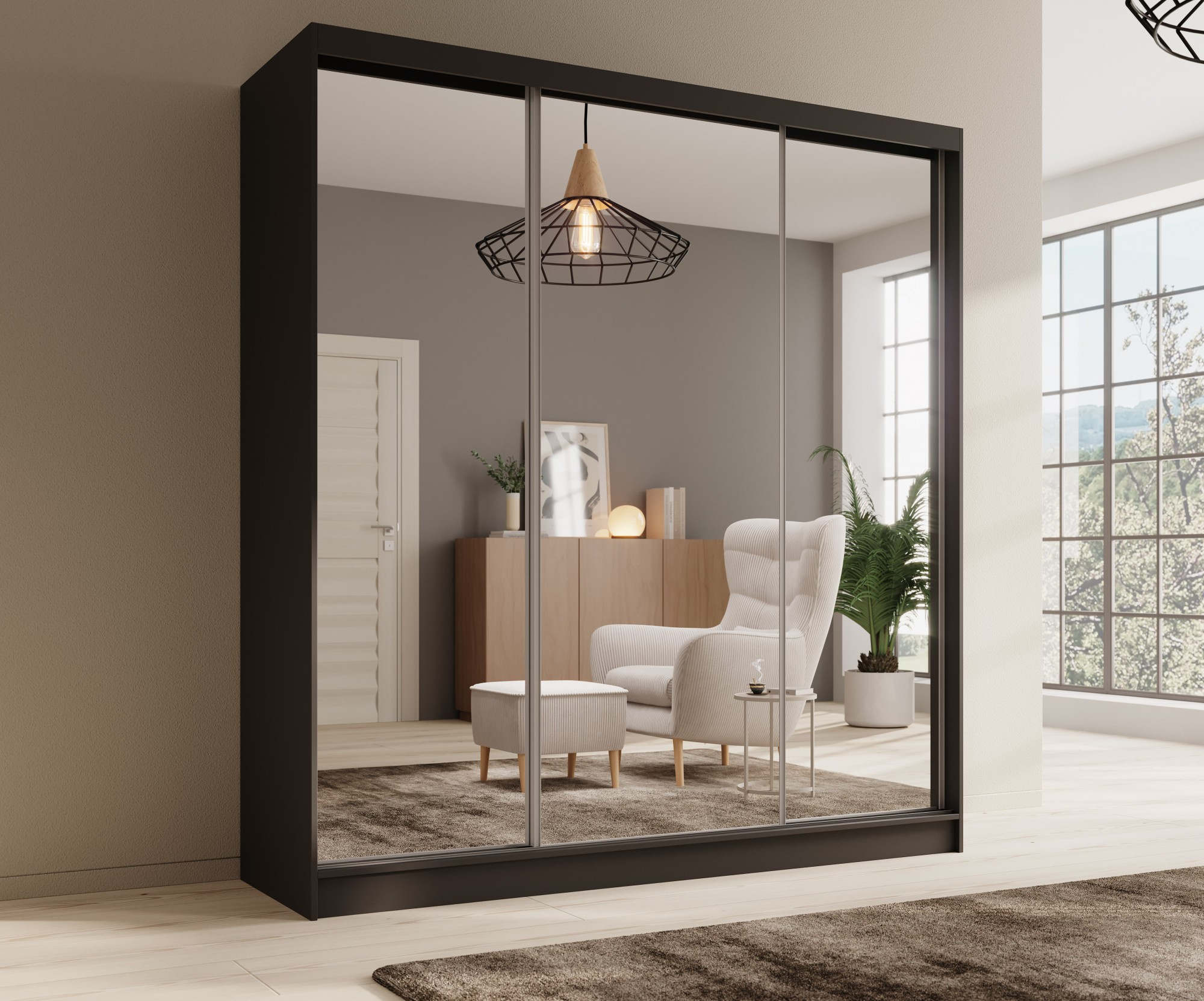 Šatní skříň Tola 200 s posuvnými dveřmi a zrcadly je ideálním řešením pro ty, kteří oceňují spojení moderního designu s praktičností. Díky šířce 200 cm a prostorné konstrukci nabízí výjimečnou kapacitu, která umožňuje uspořádání šatníku, ložního prádla či jiných nezbytných předmětů.