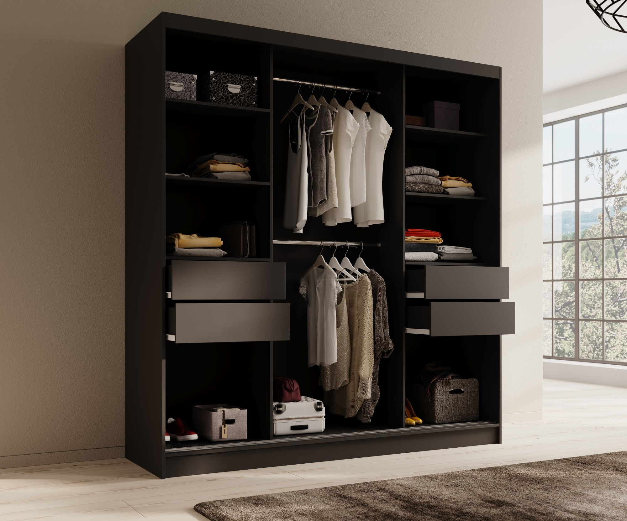 Šatní skříň Tola 200 Černá+Černá