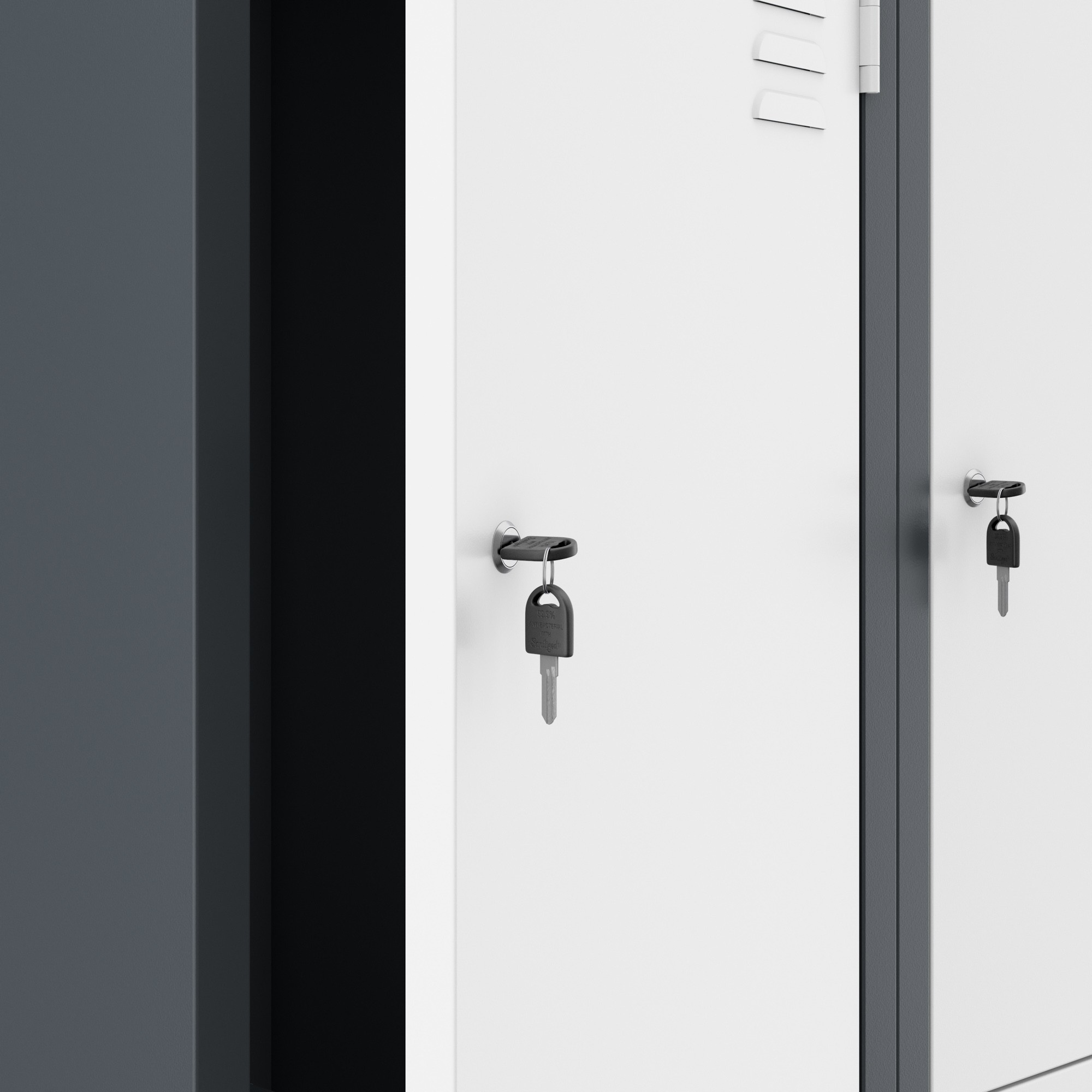 Bezpečnost vašich uložených věcí je pro nás prioritou. Proto je každá schránka vybavena kvalitním zámkem zajištěným v jednom bodě, který spolehlivě chrání vaše osobní věci před neoprávněným přístupem. V balení naleznete dva klíče ke každému zámku, takže máte vždy k dispozici náhradní.