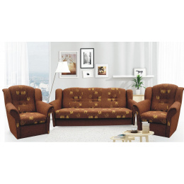 Agata je velmi oblíbeným klasickým modelem sedací soupravy v provedení 3F+1+1. Je velmi pohodlná a zároveň praktická. Sedací souprava je rozkládací a samozřejmostí je i úložný prostor. Jednoduchým rozkladem pomocí systému "klik klak" vznikne lůžko k příležitostnému přespání Vaší návštěvy. Sedací souprava je potažena kvalitní látkou a nabízíme ji v několika barvách. Výpň sedáků tvoří pružiny v kombinaci s kvalitní PUR pěnou. Tato kombinace zajistí velmi pohodlné sezení. Cena sedací soupravy je uvedena za rozkládací trojsed a dvě křesla.