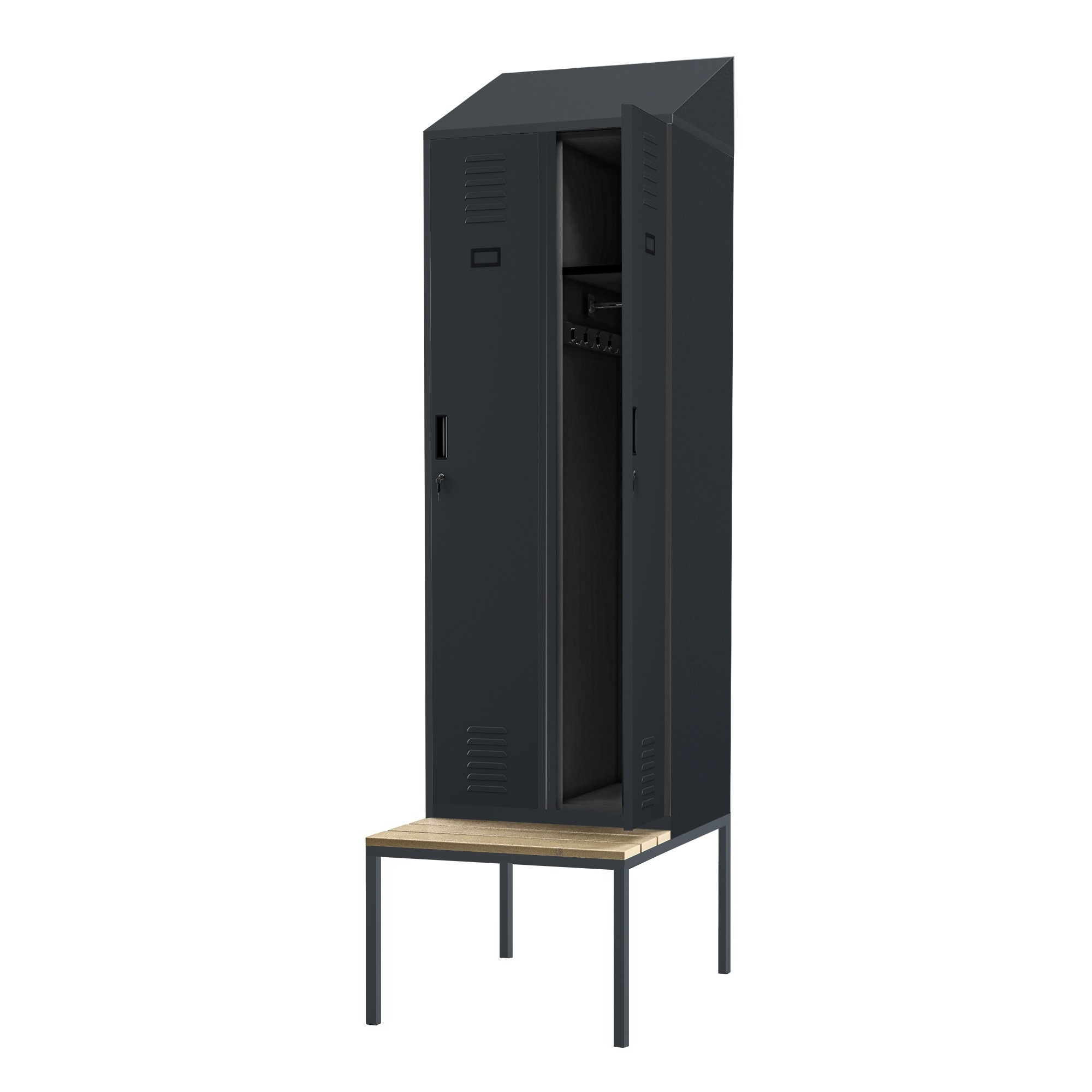 Šatní skříňka s lavičkou a stříškou KACPER II PRO, 600 x 2295 x 850 mm, antracitová