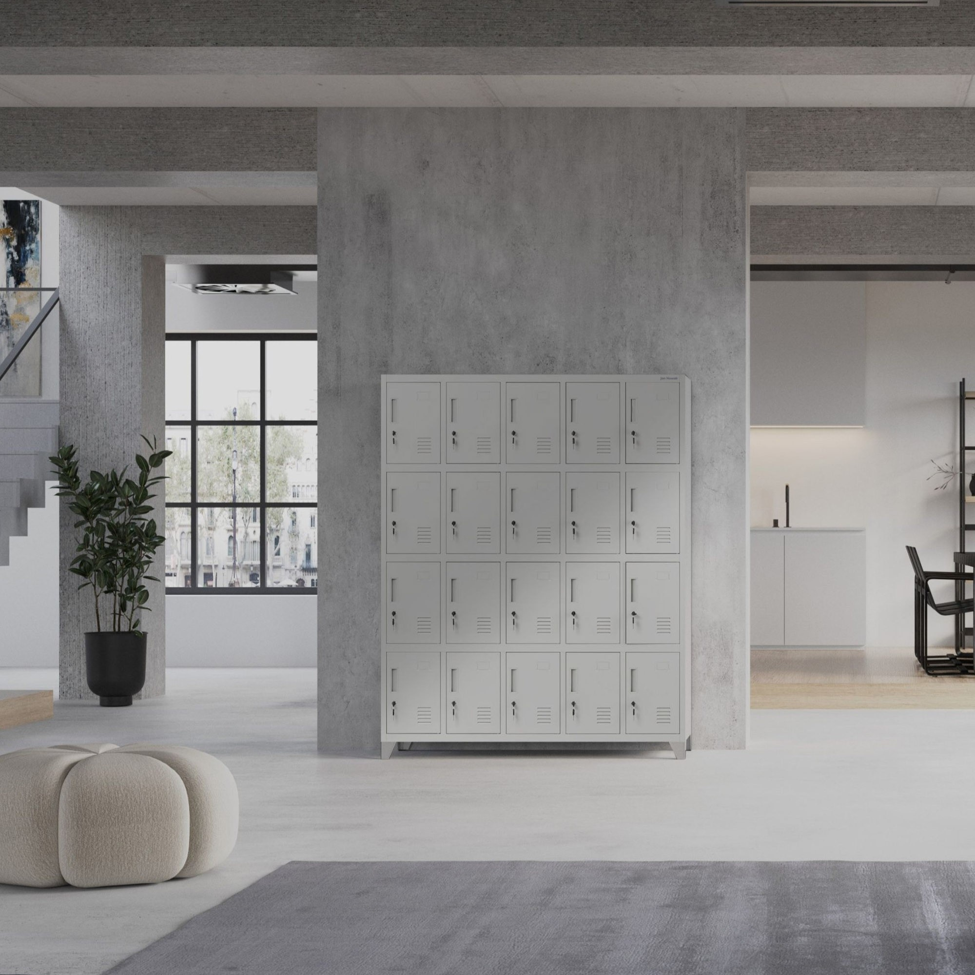 Jednou z největších předností skříně ROBERT je její kompaktnost. S šířkou pouhých 136 cm nabízí neuvěřitelných 20 samostatných uzamykatelných přihrádek. To z ní činí ideální řešení i pro prostory s omezeným místem. Každý uživatel tak získá svůj vlastní bezpečný prostor pro uložení oděvů, obuvi, tašek a dalších osobních věcí.