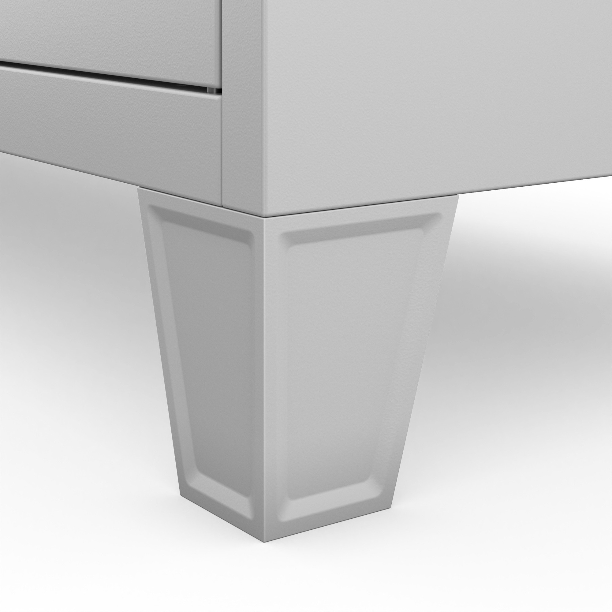 Skříň ROBERT je vyrobena z kvalitní oceli s práškovým nástřikem o tloušťce 0,6 mm. Tato povrchová úprava zajišťuje vysokou odolnost proti poškrábání, korozi a dalším vnějším vlivům. Skříň tak vydrží i náročné používání a zachová si svůj elegantní vzhled po dlouhá léta.