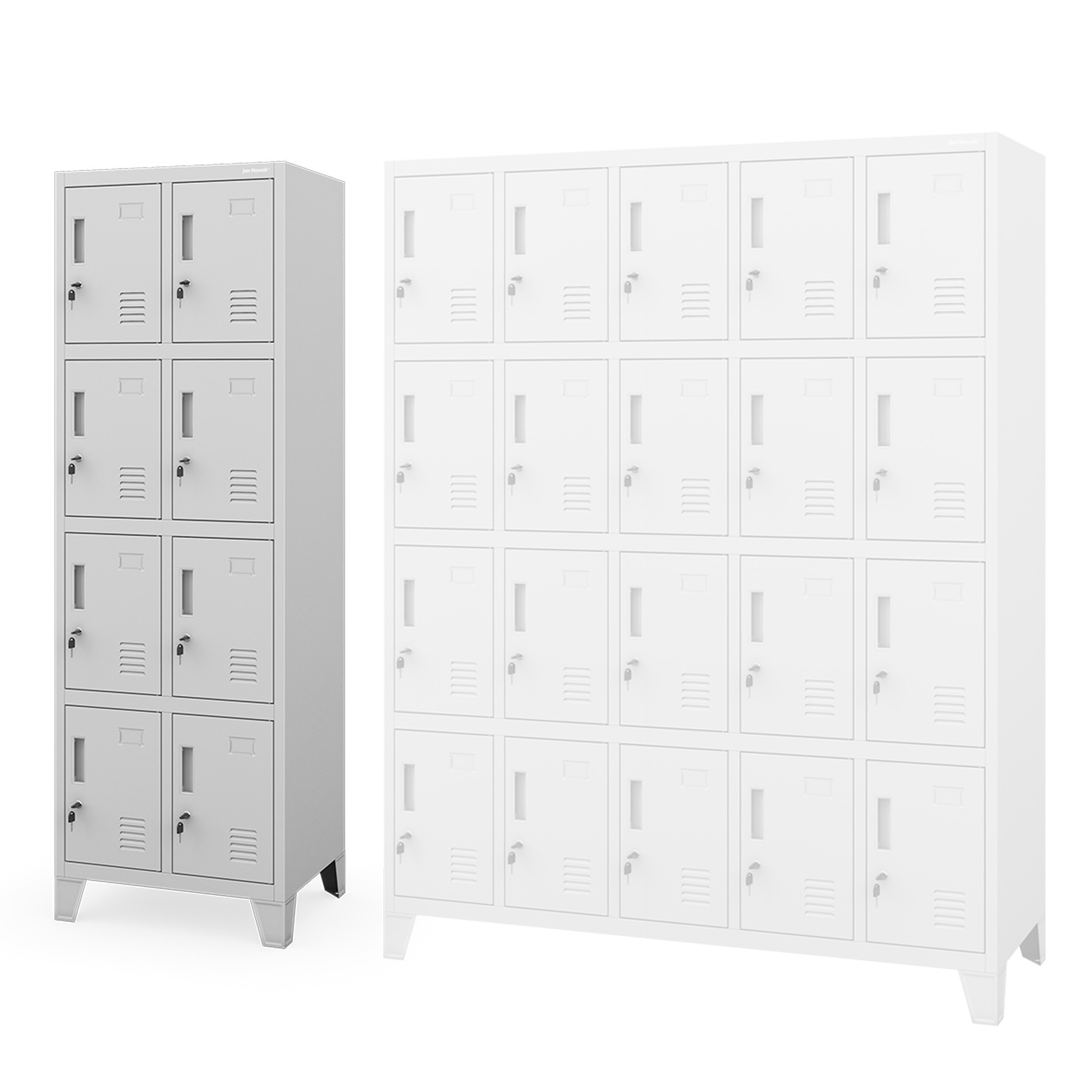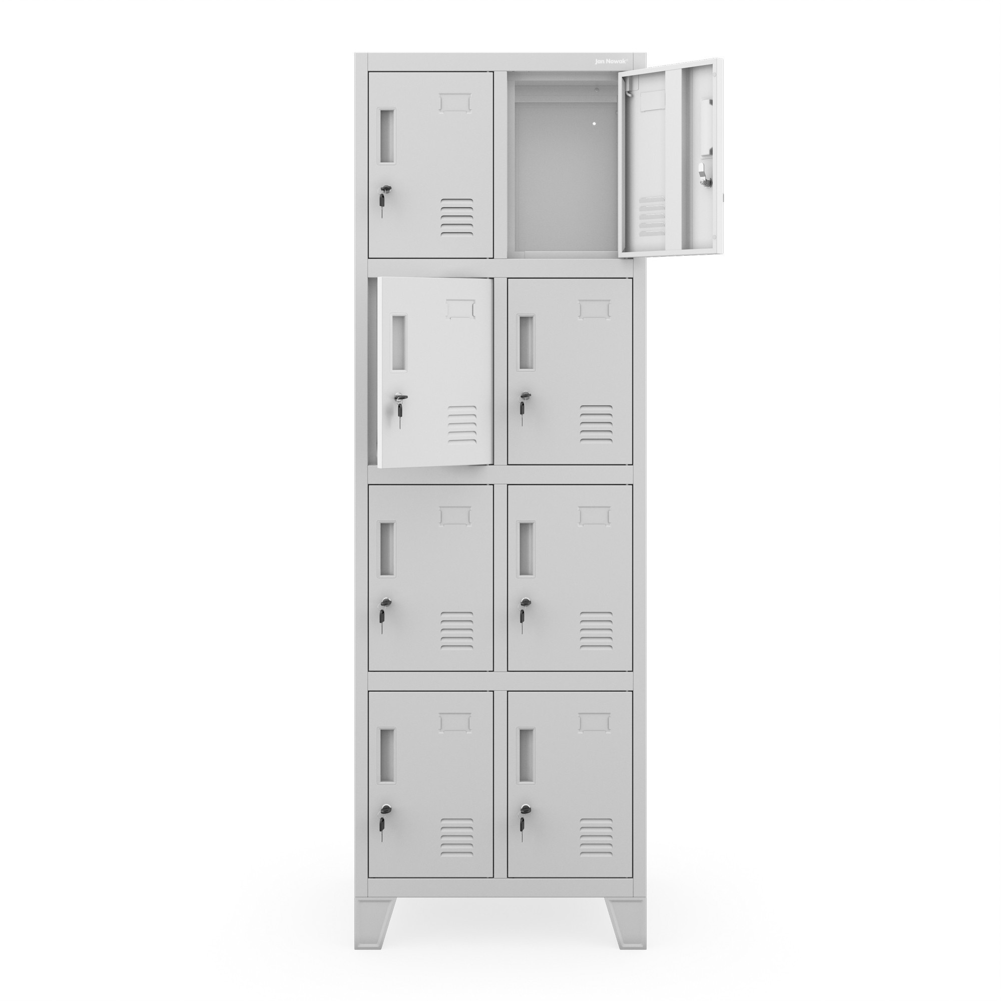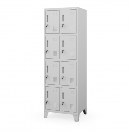 Skříňka je rozdělena na osm samostatných přihrádek o stejných rozměrech, které poskytují dostatek prostoru pro uložení osobních věcí, drobností, knih, tašek nebo mikin. Všechny vaše věci budou přehledně uspořádány a vždy po ruce. Přihrádky jsou umístěny v různých výškách, takže je mohou pohodlně používat osoby různé výšky.