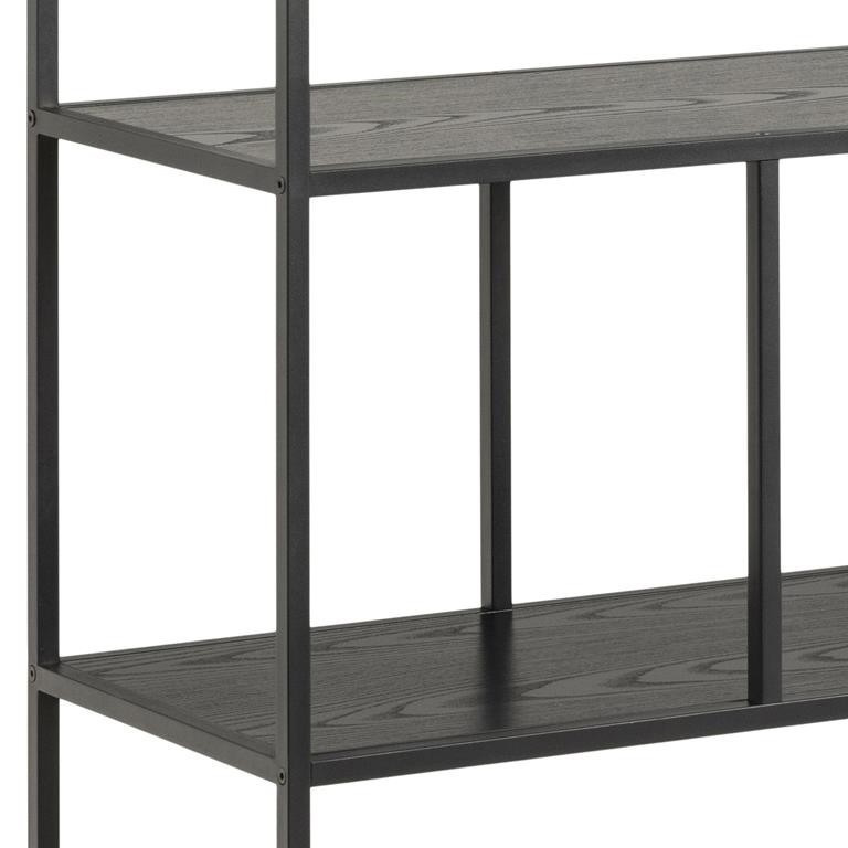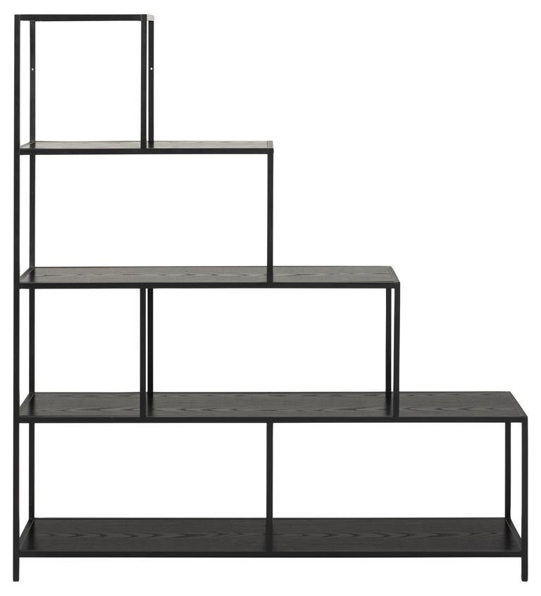 Regál schodový Seaford je nábytek s velmi neobvyklou formou, díky které je zajímavou ozdobou interiéru. Hodí se do kanceláře, obývacího pokoje a také dětského pokoje. Kostra regálu je vyrobena z kovu lakovaného práškovou barvou na černo. Výhodou regálu jsou čtyři dlouhé police z MDF desky s dýhou a jedna kratší na samém vrchu. Geometrický tvar schodů umožňuje esteticky vystavit rostliny, suvenýry nebo fotografie na regálu. Regál stojí na čtyřech nohách opatřených zespodu ochrannými krytkami. Počet kartonů: 1 Rozměry kartonů: 154,5x38x11,9cm Hmotnost kartonů: 21kg
