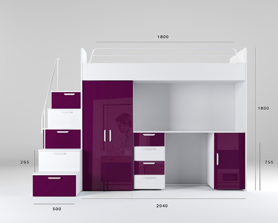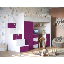 Patrová postel PARADISE 4S, Bílá Fialová lesk