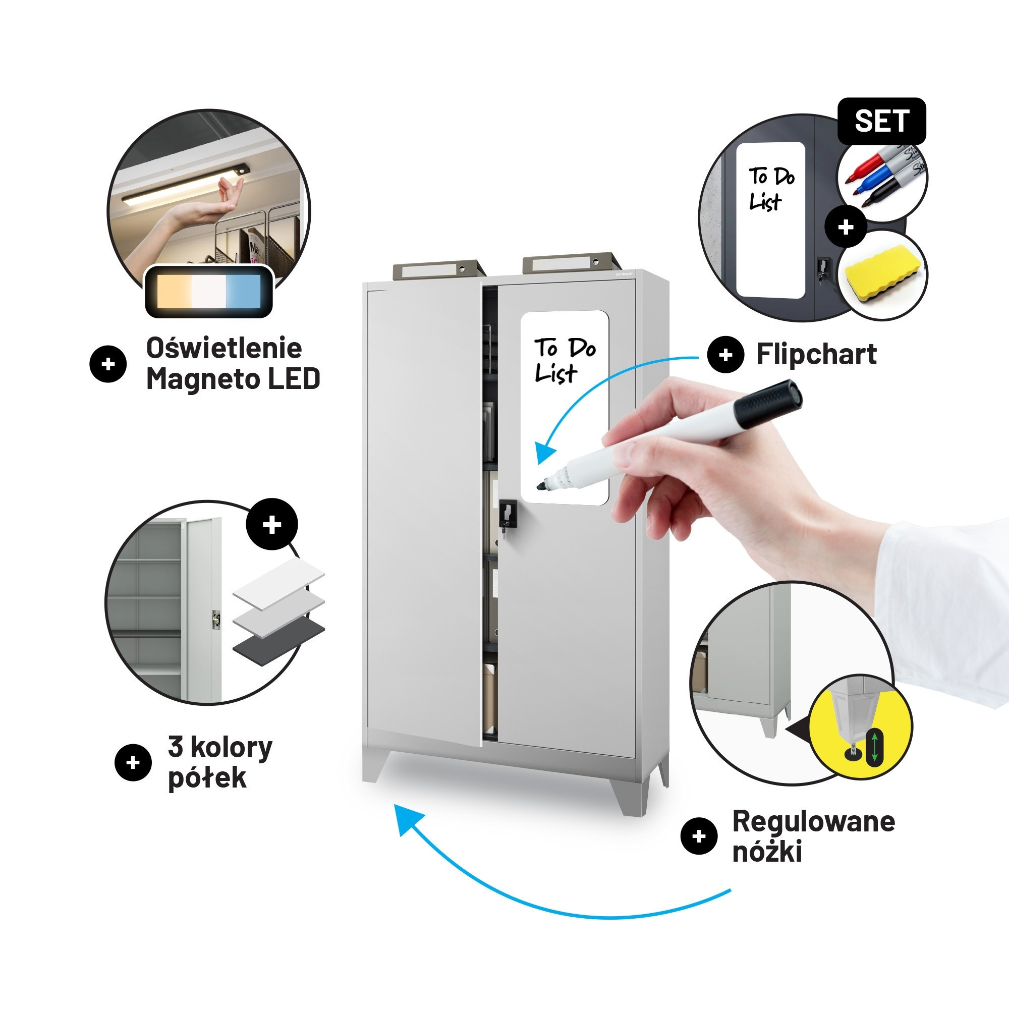 Skříň JAN II je investicí do kvality, funkčnosti a bezpečnosti. Je to spolehlivé řešení pro uskladnění dokumentů, nářadí, zdravotnického vybavení a dalších předmětů, které potřebujete mít bezpečně a uspořádaně uložené. Díky svému univerzálnímu designu a robustní konstrukci se stane nepostradatelným prvkem vaší kanceláře, dílny, ordinace nebo i moderního domova.