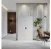 - Bezpečnostní Zámek: Dvoukřídlé dveře jsou vybaveny pevným zámkem se třemi uzamykacími body, který chrání obsah skříně před neoprávněným přístupem. Součástí balení jsou 2 klíče.