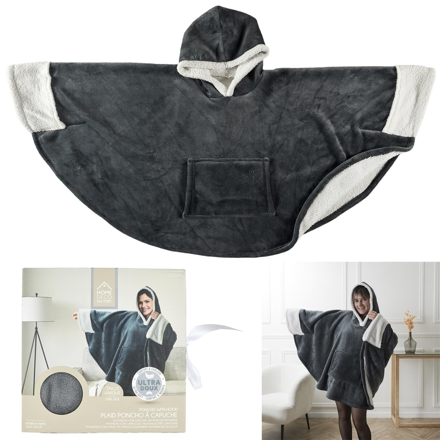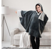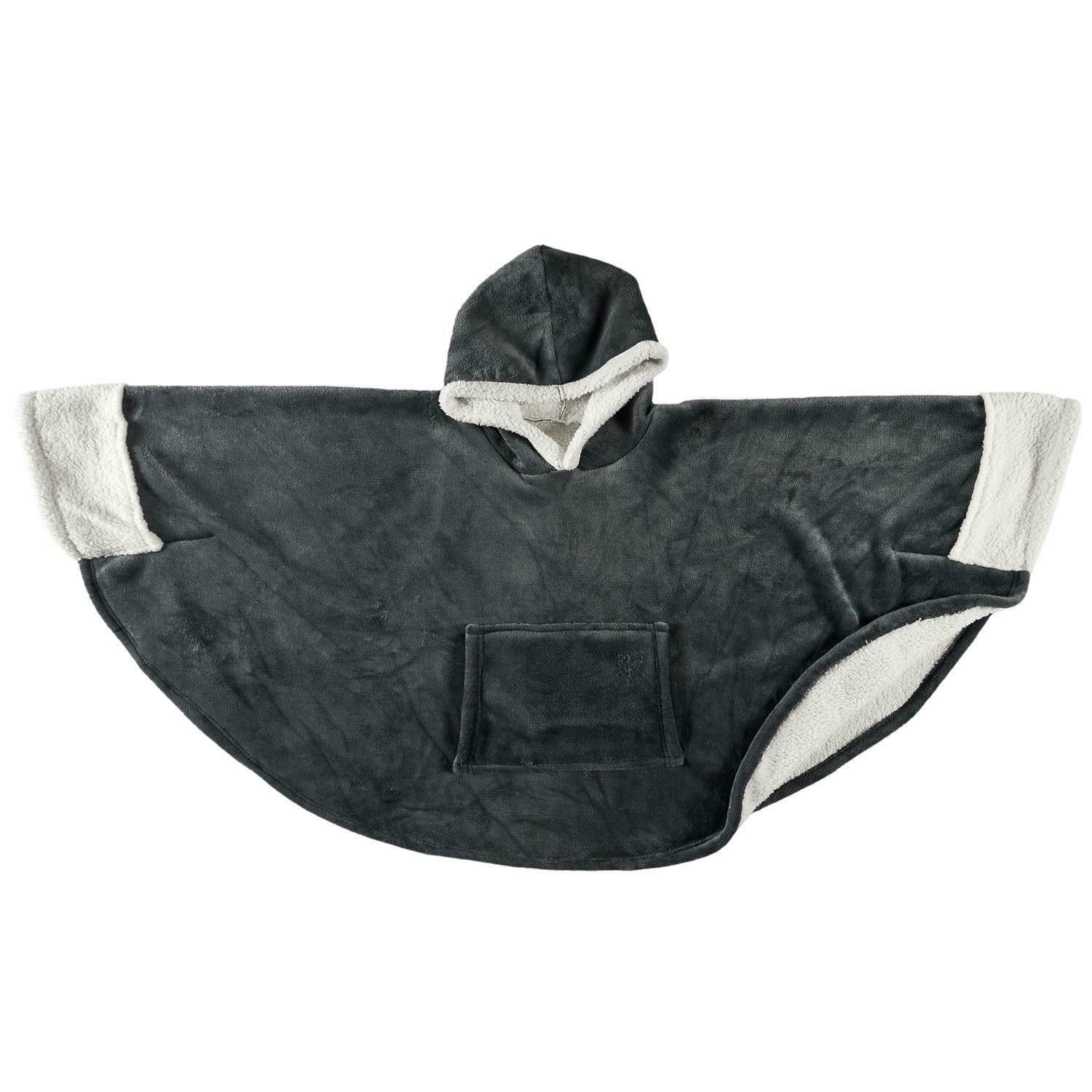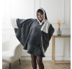Šedá pončo deka s kapucí a kapsou