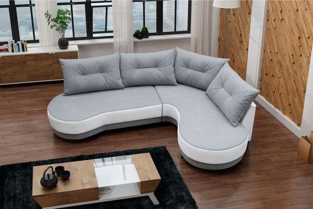 Rohová sedací souprava Abbey má velmi neobvyklý zaoblený tvar, což ji výrazně odlišuje od klasických a moderních sedaček. Je velmi elegantní a pohodlná a bude ozdobou každého interiéru. Sedací souprava je potažena oblíbenou kvalitní látkou Inari v kombinaci s EKO kůží, a to v několika odstínech. V ceně sedací soupravy jsou 4 velké opěrné polštáře. Ostatní vyobrazené dekorace nejsou v ceně.