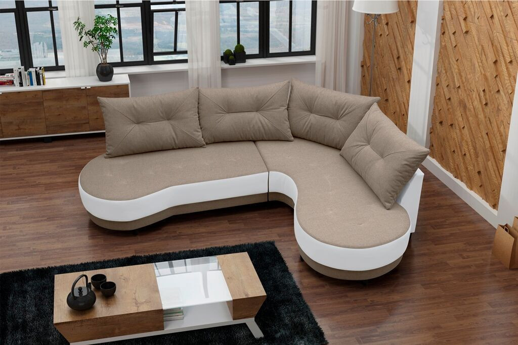 Rohová sedací souprava Abbey má velmi neobvyklý zaoblený tvar, což ji výrazně odlišuje od klasických a moderních sedaček. Je velmi elegantní a pohodlná a bude ozdobou každého interiéru. Sedací souprava je potažena oblíbenou kvalitní látkou Inari v kombinaci s EKO kůží, a to v několika odstínech. V ceně sedací soupravy jsou 4 velké opěrné polštáře. Ostatní vyobrazené dekorace nejsou v ceně.