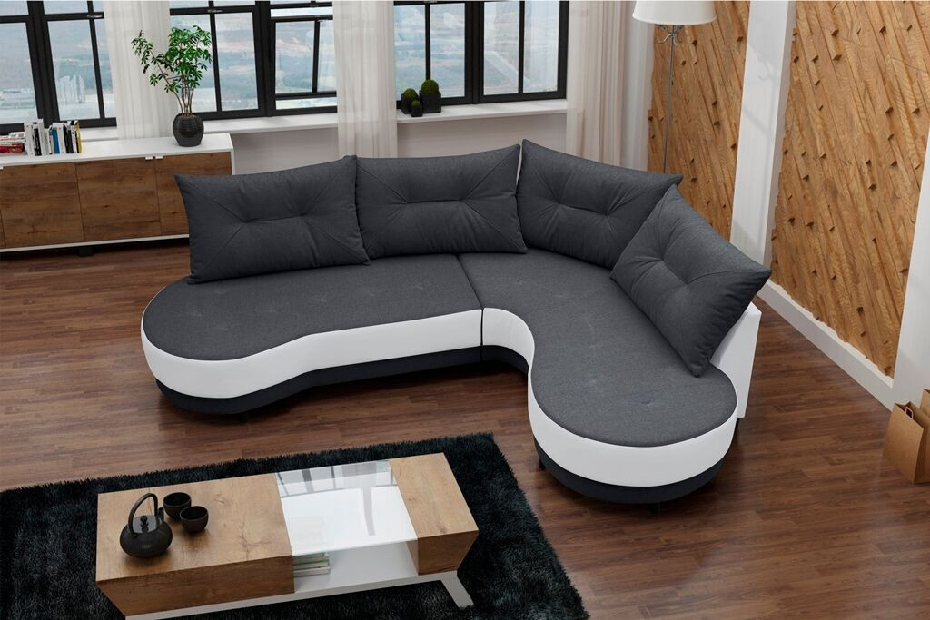 Rohová sedací souprava Abbey P tm.šedá/bílá
