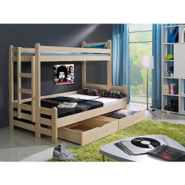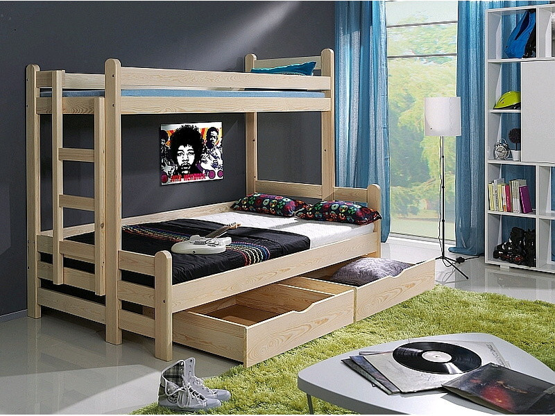 Dětská patrová postel pro 3 děti BENJAMIN je vyrobena z kvalitního masivního lakovaného borovicového dřeva.
