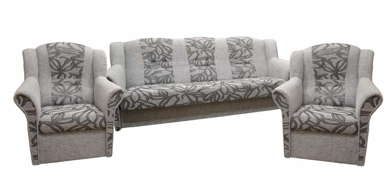 Agata je stále velmi oblíbeným klasickým modelem sedací soupravy v provedení 3F+1+1. Je velmi pohodlná a zároveň praktická. Sedací souprava je rozkládací a samozřejmostí je i úložný prostor. Jednoduchým rozkladem pomocí systému "klik klak" vznikne lůžko k příležitostnému přespání Vaší návštěvy. Sedací souprava je potažena kvalitní látkou Bergamo a nabízíme ji v několika barvách, ze kterých si určitě vyberete tu nejvhodnější pro Váš obývací pokoj. Výplň sedáků tvoří pružiny v kombinaci s kvalitní PUR pěnou. Tato kombinace zajistí velmi pohodlné sezení. Cena sedací soupravy je uvedena za rozkládací trojsed a dvě křes