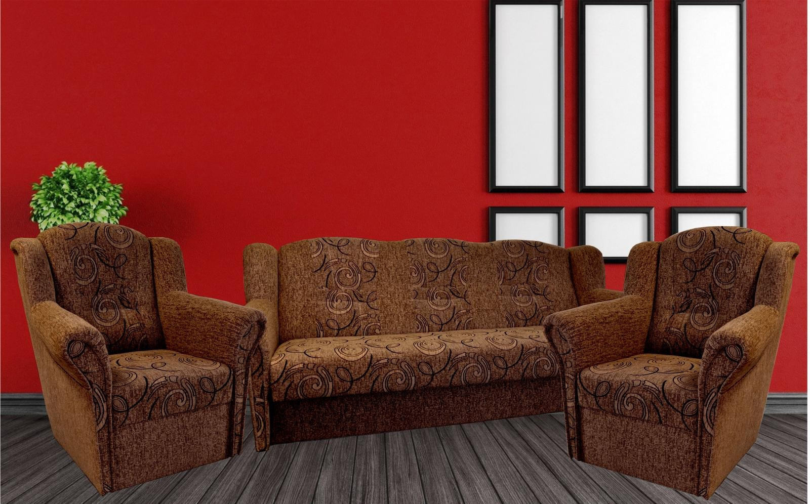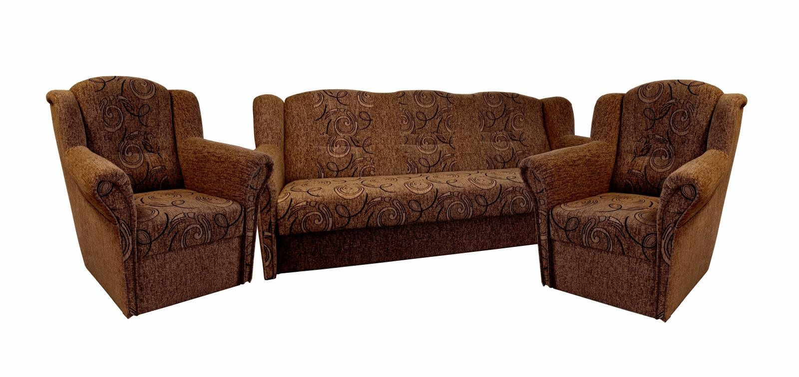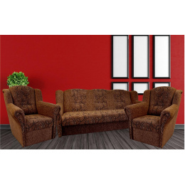 Agata je stále velmi oblíbeným klasickým modelem sedací soupravy v provedení 3F+1+1. Je velmi pohodlná a zároveň praktická. Sedací souprava je rozkládací a samozřejmostí je i úložný prostor. Jednoduchým rozkladem pomocí systému "klik klak" vznikne lůžko k příležitostnému přespání Vaší návštěvy. Sedací souprava je potažena kvalitní látkou a nabízíme ji v několika barvách, ze kterých si určitě vyberete tu nejvhodnější pro Váš obývací pokoj. Výpň sedáků tvoří pružiny v kombinaci s kvalitní PUR pěnou. Tato kombinace zajistí velmi pohodlné sezení. Cena sedací soupravy je uvedena za rozkládací trojsed a dvě křesla. Úvodní fotografie je ilustrační. Sedací souprava bude dodána v hnědé barvě. Vzorek látky je vyobrazený v doplňkových fotografiích.