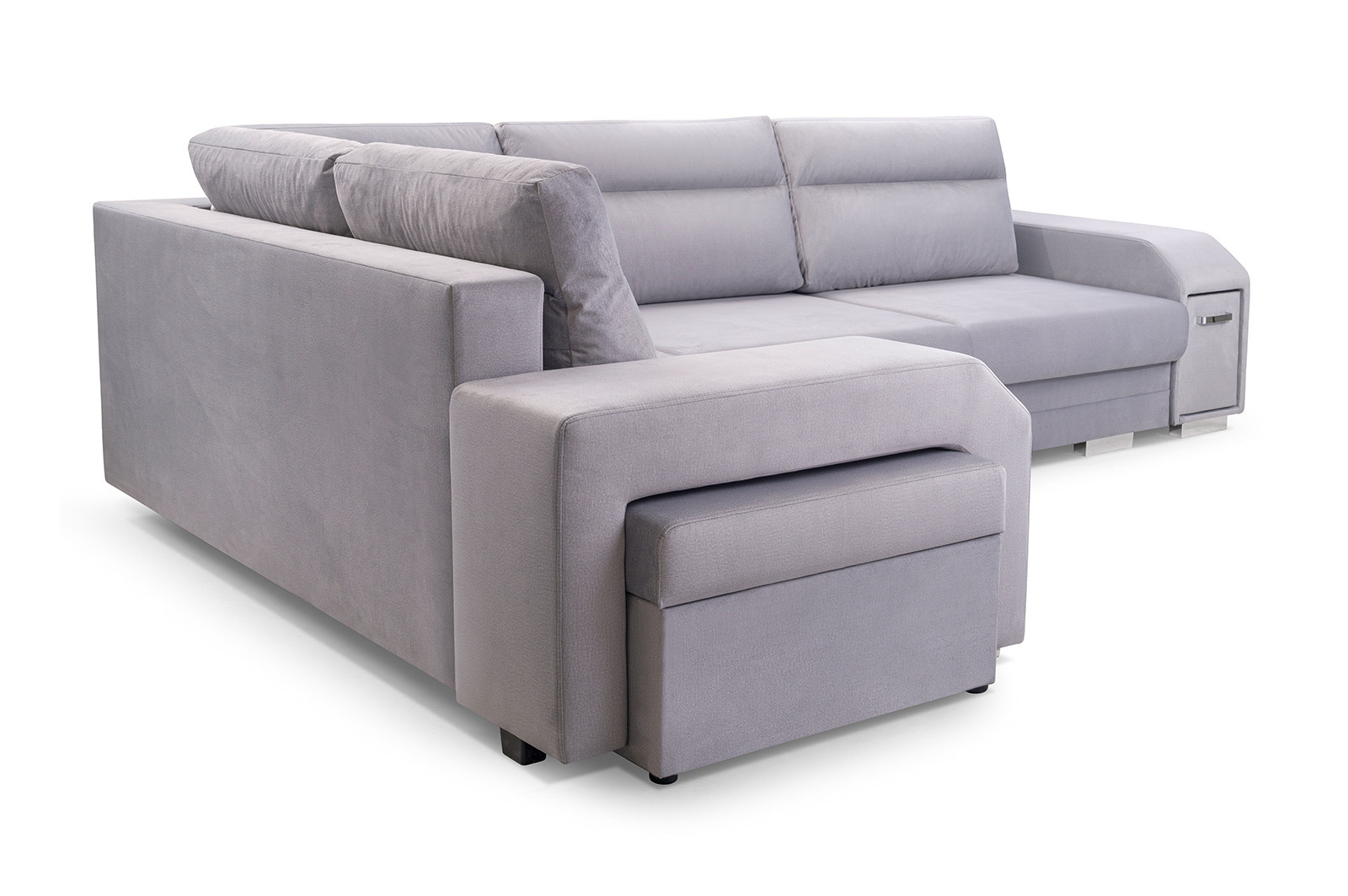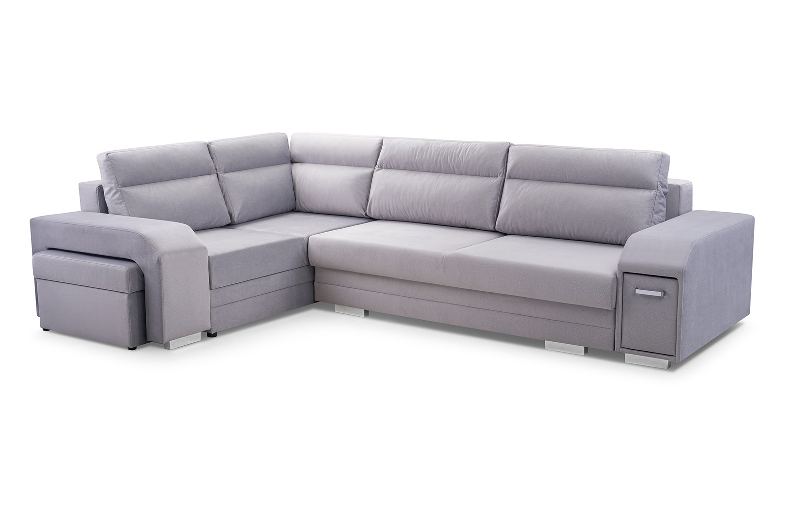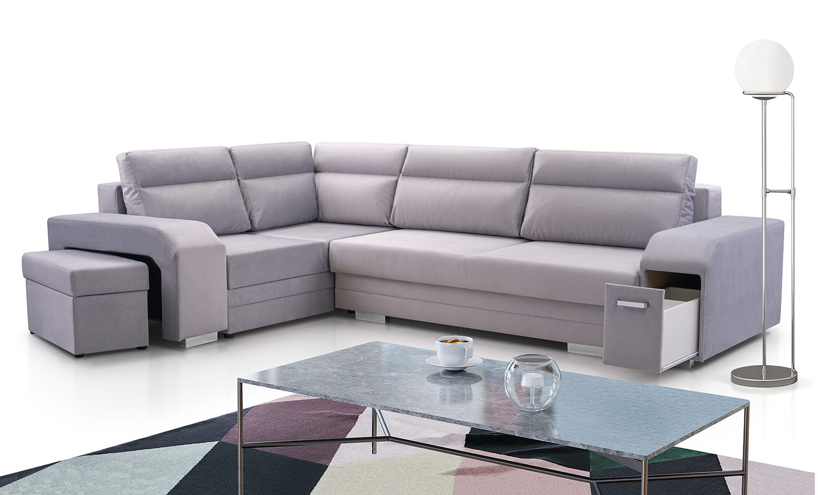 Sedací souprava Alvin v moderním designu v sobě spojuje 2 důležité prvky, které nesmí chybět žádné sedací soupravě. Jsou to pohodlí a praktičnost. Praktickou stránkou této sedací soupravy je možnost rozložení pro příležitostné přespání návštěvy a nepostradatelné úložné prostory. Úložný prostor s univerzálním využitím najdete v područi, dále v taburetu, který je možno zasunout do druhé područe a samořejmostí je i úložný prostor v sedací soupravě. Jsou dva a využijete je např. na lůžkoviny. Výplň sedáků tvoří kombinace pružin s kvalitní PUR pěnou. Tato kombinace spolu s velkými opěrnými polštáři, zajišťuje pohodlí. Sedací soupravu nabízíme v levém i pravém provedení a v několika oblíbených barvách. Vyobrazené doplňky a dekorace nejsou v ceně.