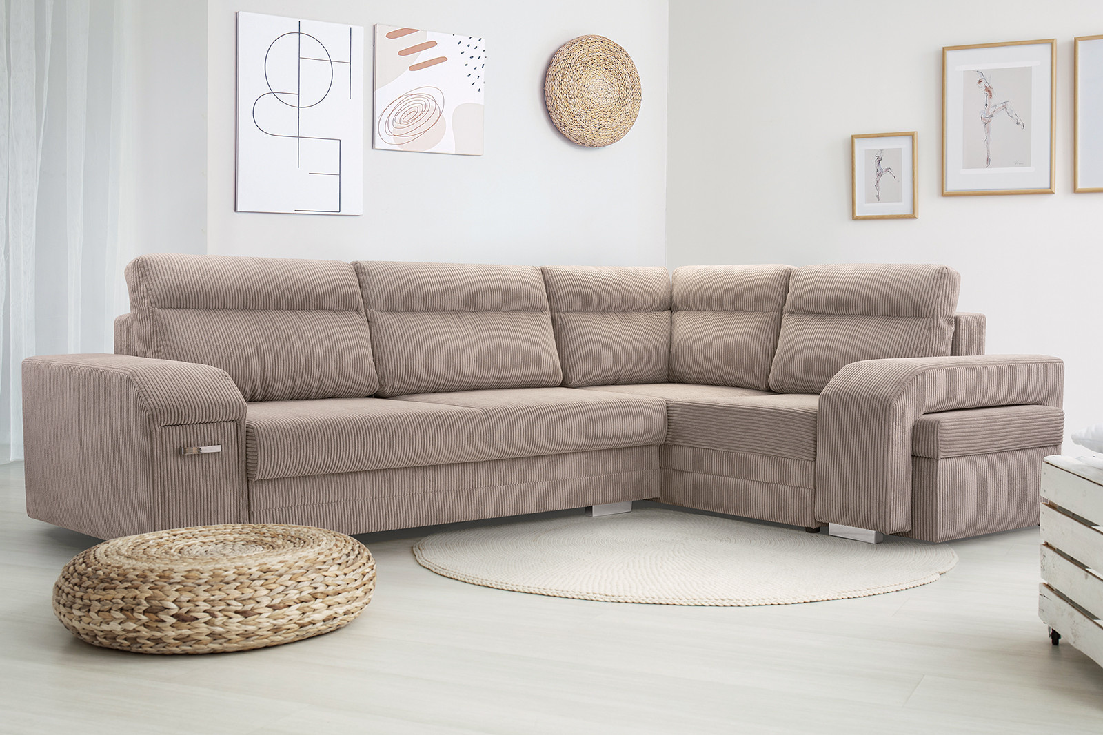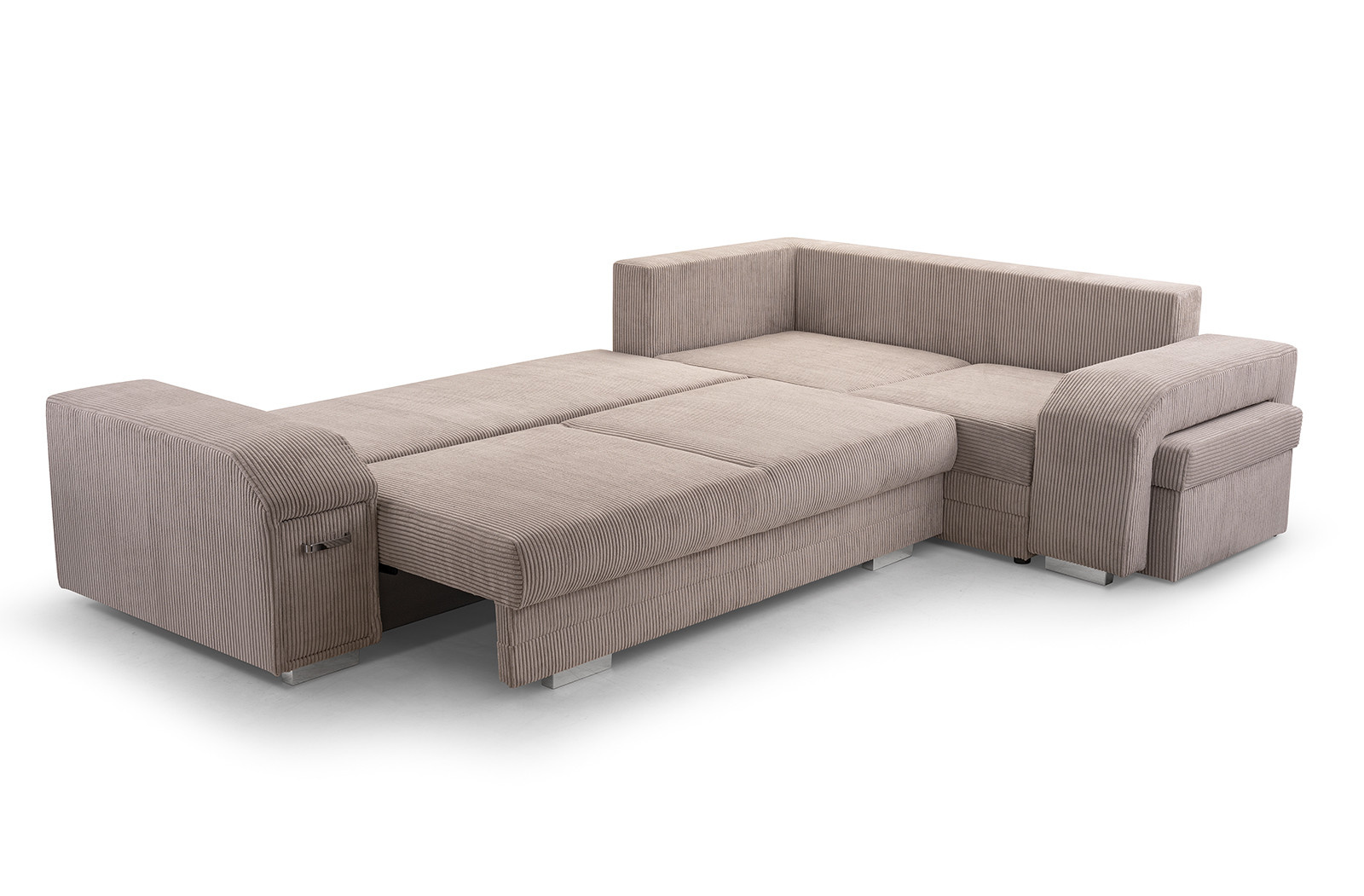 Sedací souprava Alvin v moderním designu v sobě spojuje 2 důležité prvky, které nesmí chybět žádné sedací soupravě. Jsou to pohodlí a praktičnost. Praktickou stránkou této sedací soupravy je možnost rozložení pro příležitostné přespání návštěvy a nepostradatelné úložné prostory. Úložný prostor s univerzálním využitím najdete v područi, dále v taburetu, který je možno zasunout do druhé područe a samořejmostí je i úložný prostor v sedací soupravě. Jsou dva a využijete je např. na lůžkoviny. Výplň sedáků tvoří kombinace pružin s kvalitní PUR pěnou. Tato kombinace spolu s velkými opěrnými polštáři, zajišťuje pohodlí. Sedací souprava je celočalouněná a můžete jí umístit také do prostoru. Sedací soupravu nabízíme v levém i pravém provedení a v několika oblíbených barvách i látkách.