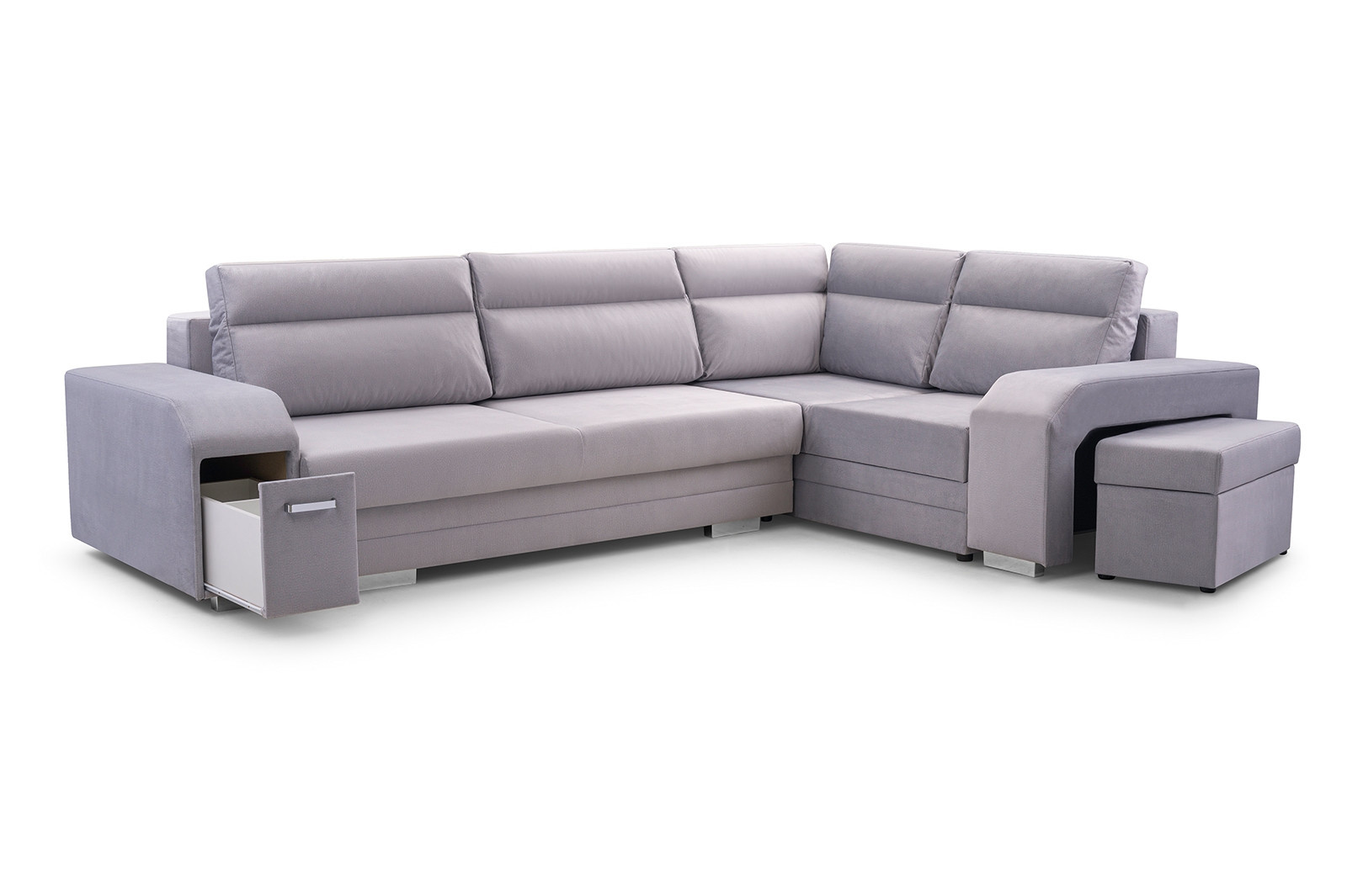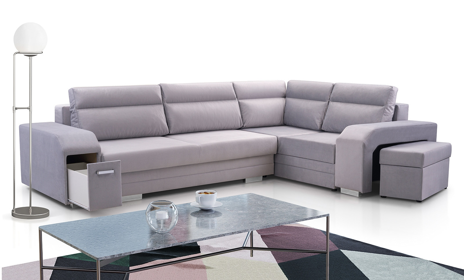 Sedací souprava Alvin v moderním designu v sobě spojuje 2 důležité prvky, které nesmí chybět žádné sedací soupravě. Jsou to pohodlí a praktičnost. Praktickou stránkou této sedací soupravy je možnost rozložení pro příležitostné přespání návštěvy a nepostradatelné úložné prostory. Úložný prostor s univerzálním využitím najdete v područi, dále v taburetu, který je možno zasunout do druhé područe a samořejmostí je i úložný prostor v sedací soupravě. Jsou dva a využijete je např. na lůžkoviny. Výplň sedáků tvoří kombinace pružin s kvalitní PUR pěnou. Tato kombinace spolu s velkými opěrnými polštáři, zajišťuje pohodlí. Sedací soupravu nabízíme v levém i pravém provedení a v několika oblíbených barvách. Vyobrazené doplňky a dekorace nejsou v ceně.