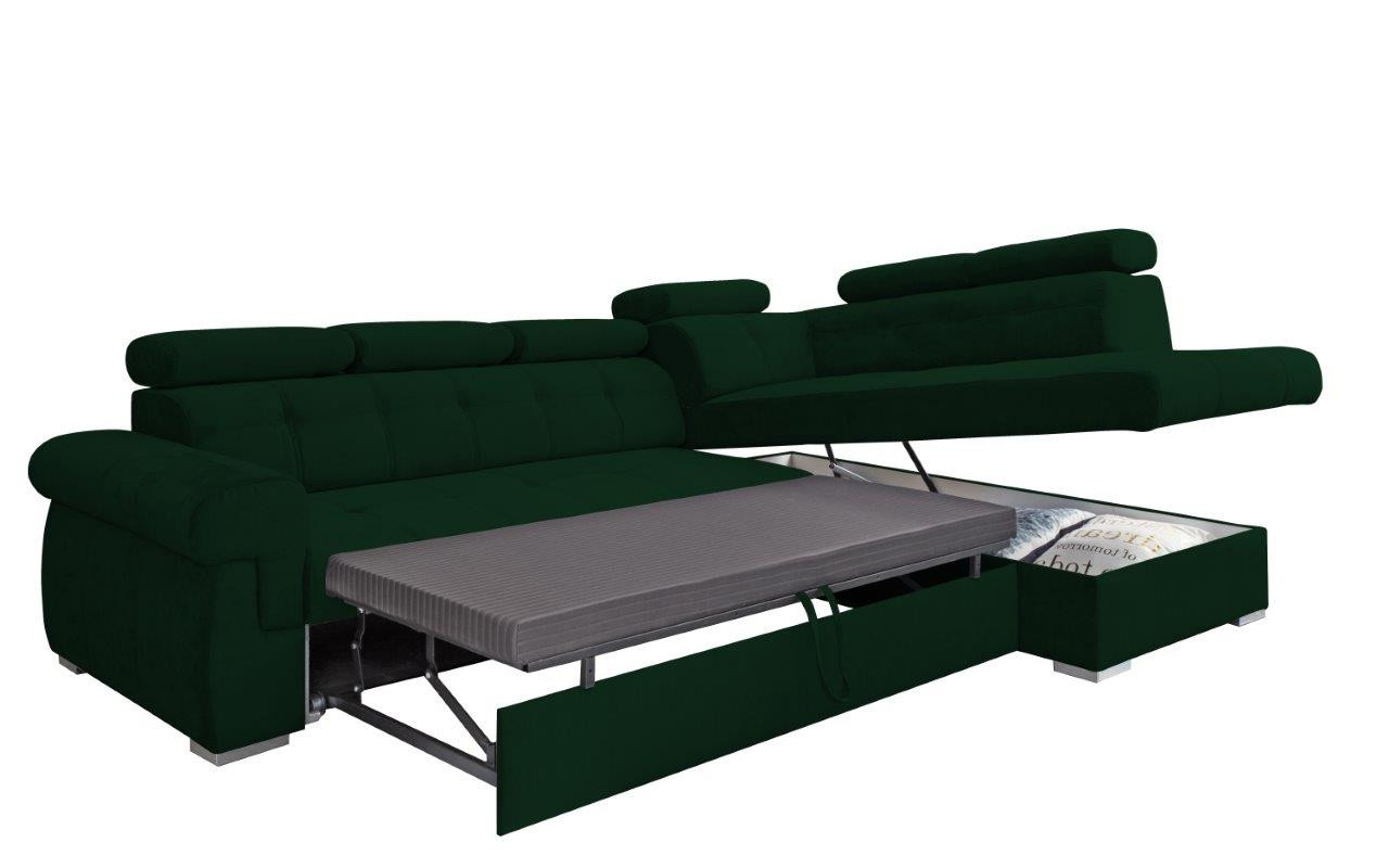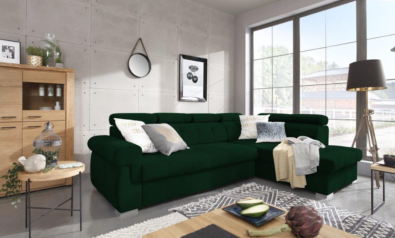 Pohodlná sedací souprava patří k nejdůležitějšímu vybavení každého obývacího pokoje. Je centrem k odpočinku po namáhavém dni, nebo k posezení s rodinou či přáteli a proto musí být pohodlná a praktická. Nabízíme Vám sedací soupravu Amadeus, která je ideálním spojením pohodlí, praktičnosti a také moderního designu. Tato sedací souprava přímo vybízí k relaxaci např. u sledování televize. Pohodlí při sezení zajišťuje výplň sedáku, kterou tvoří vlnité pružiny v kombinaci s kvalitní HR pěnou a také polohovací opěrky, které si můžete podle potřeby přizpůsobit. Praktickou stránkou je možnost rozkládání. Po rozložení vznikne dostatečně velké lůžko k občasnému přespání návštěvy. Samozřejmostí je i objemný úložný prostor, který můžete využít třeba na lůžkoviny. Sedací soupravu nabízíme v levém i pravém provedení. Vyobrazené doplňky a dekorace nejsou v ceně sedací soupravy.