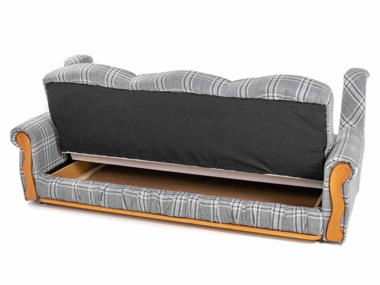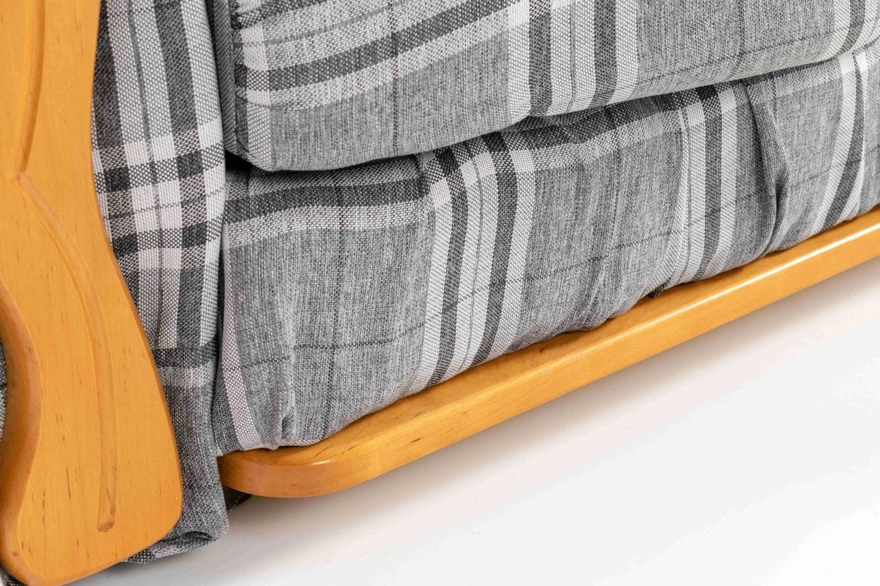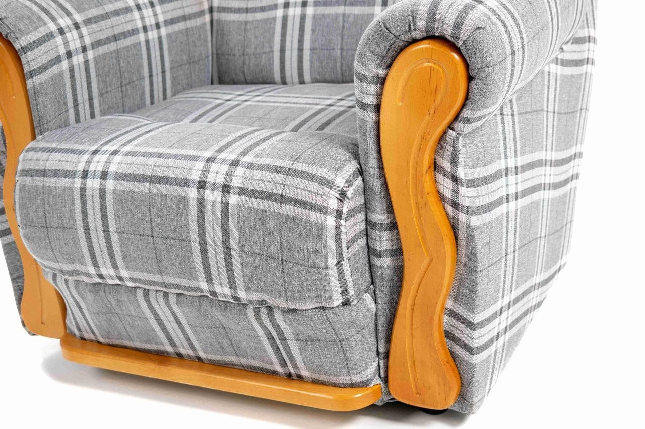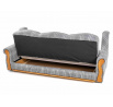 Pohovka je rozkládací systémem klik-klak, nabízí lůžko pro příležitostné spaní a nechybí ani praktický úložný prostor na lůžkoviny. O komfort se starají sedáky z PUR pěny, vyšší opěrky zad pro pohodlné vstávání a dřevěné prvky z olše, které podtrhují její nadčasový vzhled. Souprava je vhodná do klasických interiérů, obývacího pokoje i na chalupu.