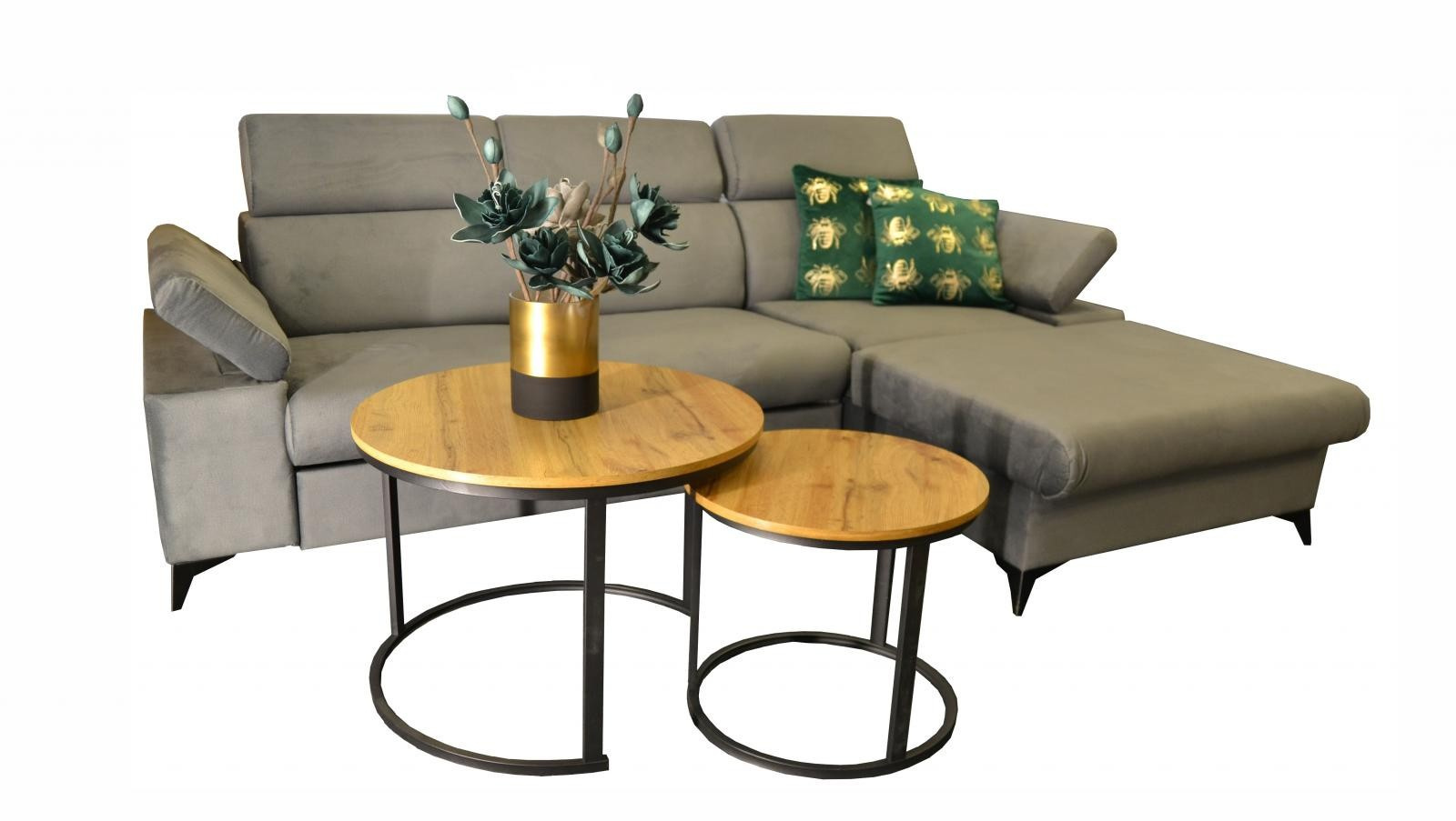 Sedací souprava Apolena se stane příjemným centrem odpočinku, nebo setkání s rodinou a přáteli. Je velmi pohodlná, praktická a nabízí dostatek místa k sezení. Praktickou stránku sedací soupravy zajišťuje možnost rozložení k příležitostnému přespání a také nepostradatelný úložný prostor. Pohodlí při sezení zajišťuje výplň sedáků, kterou tvoří kombinace pružin s kvalitní PUR pěnou. Při odpočinku, nebo sledování televize Vám zvýší pohodlí polohovací opěrky. Sedací souprava je potažena kvalitní látkou Monolith, která je sametově hebká, nežmolkovatí a má hydrofobní vlastnosti. Tkanina neabsorbuje rozlitou tekutinu, ale vytváří malé kapky na povrchu, které snadno setřete. Sedací soupravu nabízíme v levém i pravém provedení. Vyobrazené doplňky a dekorace nejsou v ceně.