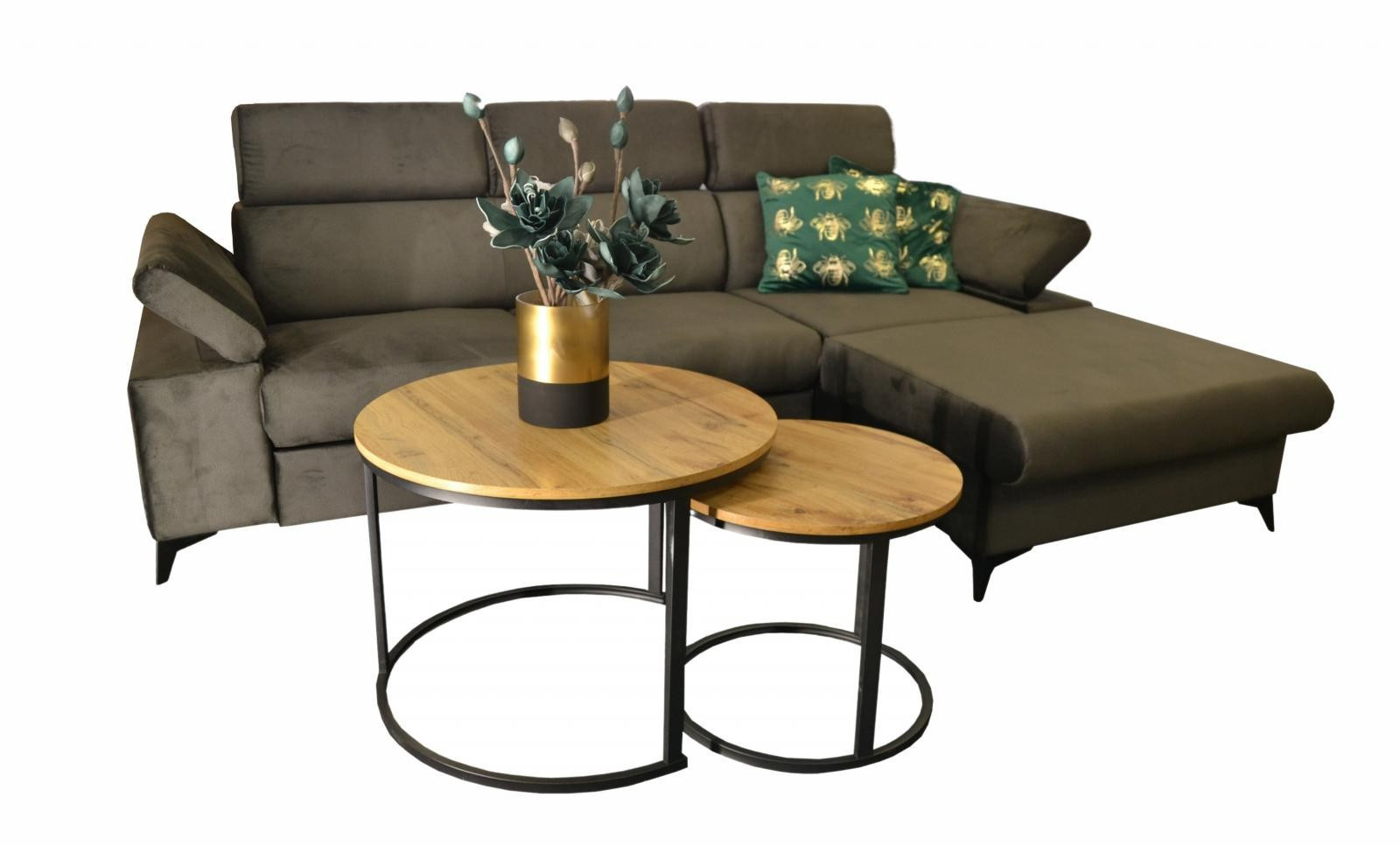 Sedací souprava Apolena se stane příjemným centrem odpočinku, nebo setkání s rodinou a přáteli. Je velmi pohodlná, praktická a nabízí dostatek místa k sezení. Praktickou stránku sedací soupravy zajišťuje možnost rozložení k příležitostnému přespání a také nepostradatelný úložný prostor. Pohodlí při sezení zajišťuje výplň sedáků, kterou tvoří kombinace pružin s kvalitní PUR pěnou. Při odpočinku, nebo sledování televize Vám zvýší pohodlí polohovací opěrky. Sedací souprava je potažena kvalitní látkou Monolith, která je sametově hebká, nežmolkovatí a má hydrofobní vlastnosti. Tkanina neabsorbuje rozlitou tekutinu, ale vytváří malé kapky na povrchu, které snadno setřete. Sedací soupravu nabízíme v levém i pravém provedení. Vyobrazené doplňky a dekorace nejsou v ceně.