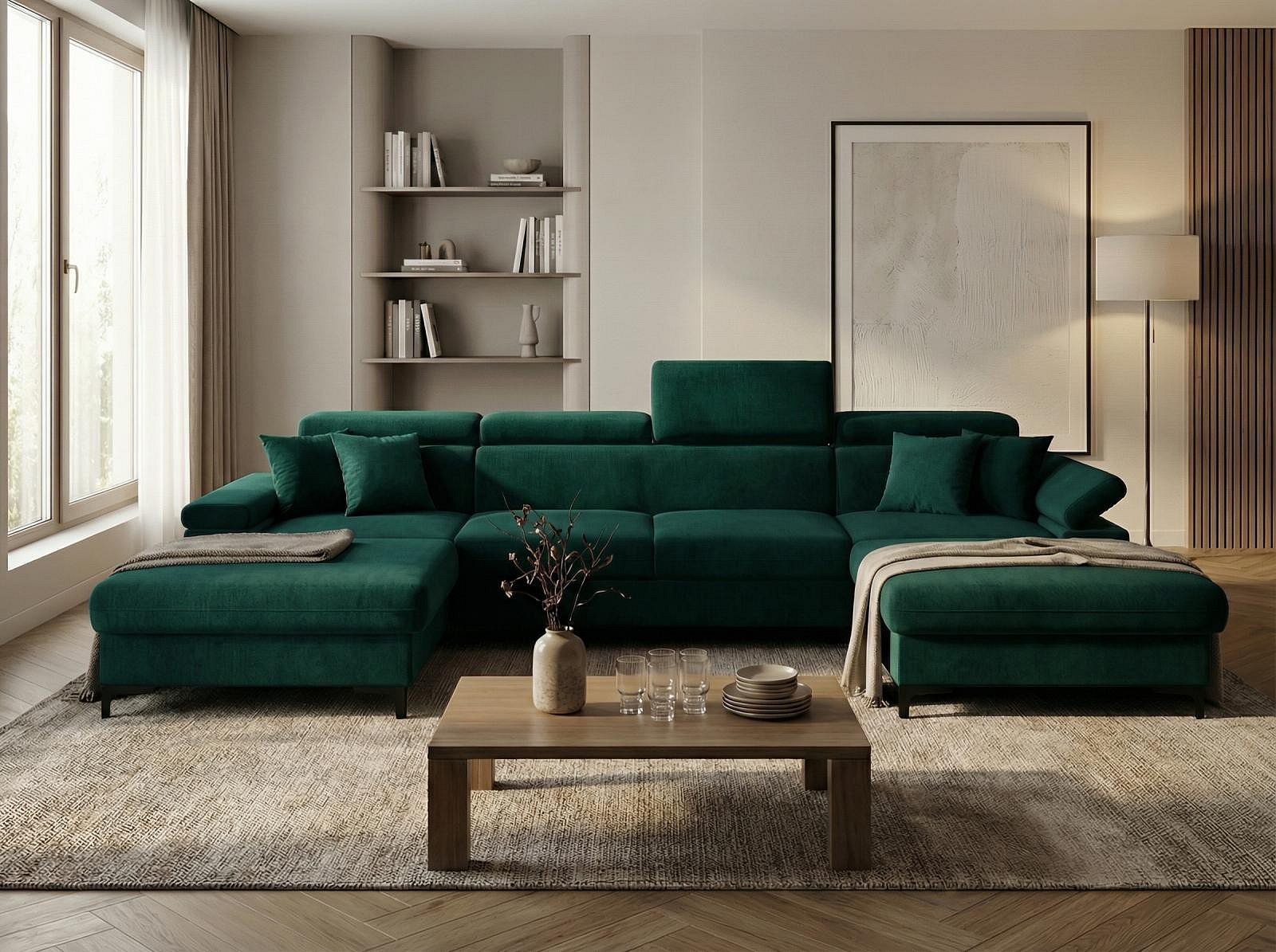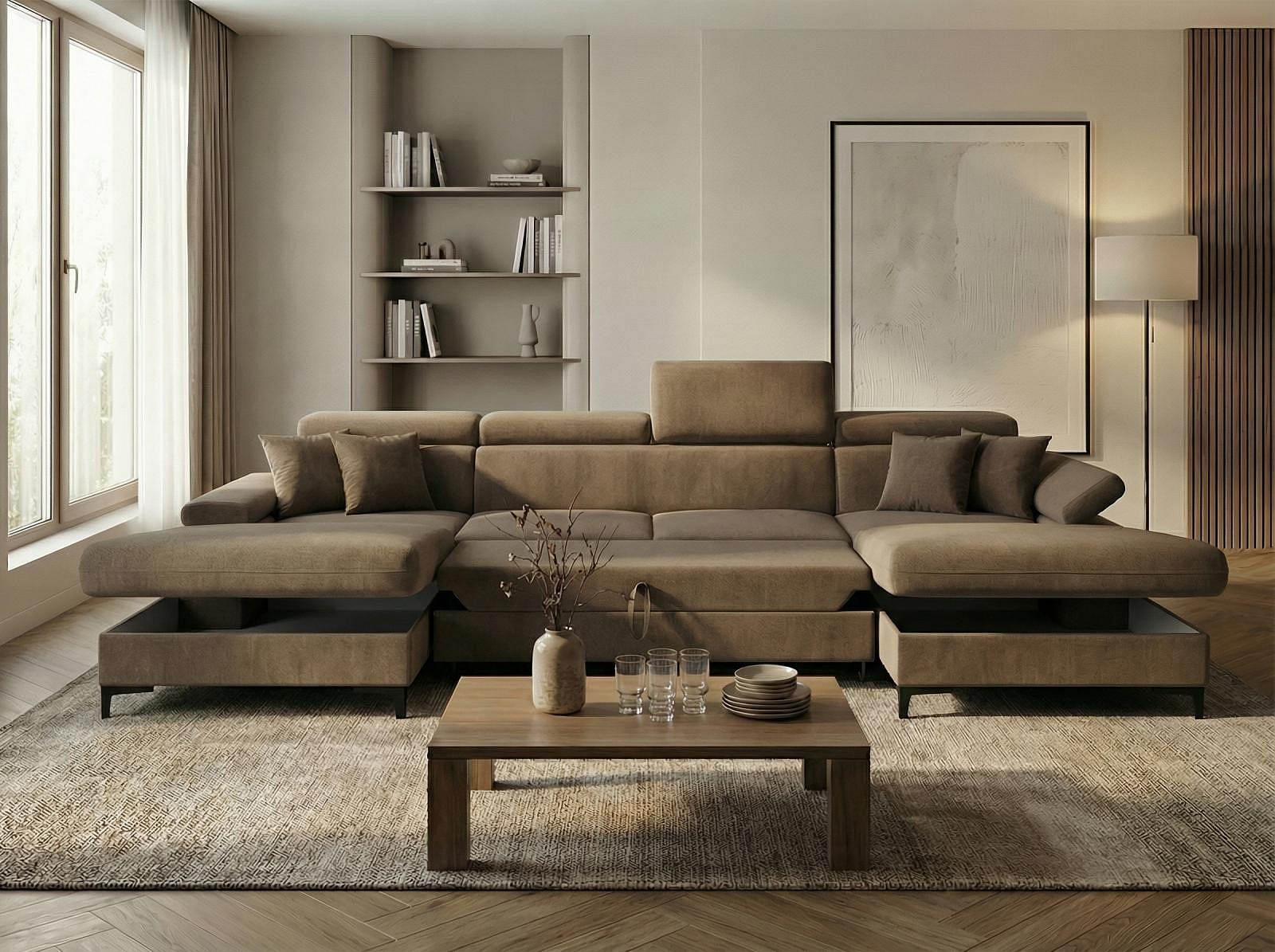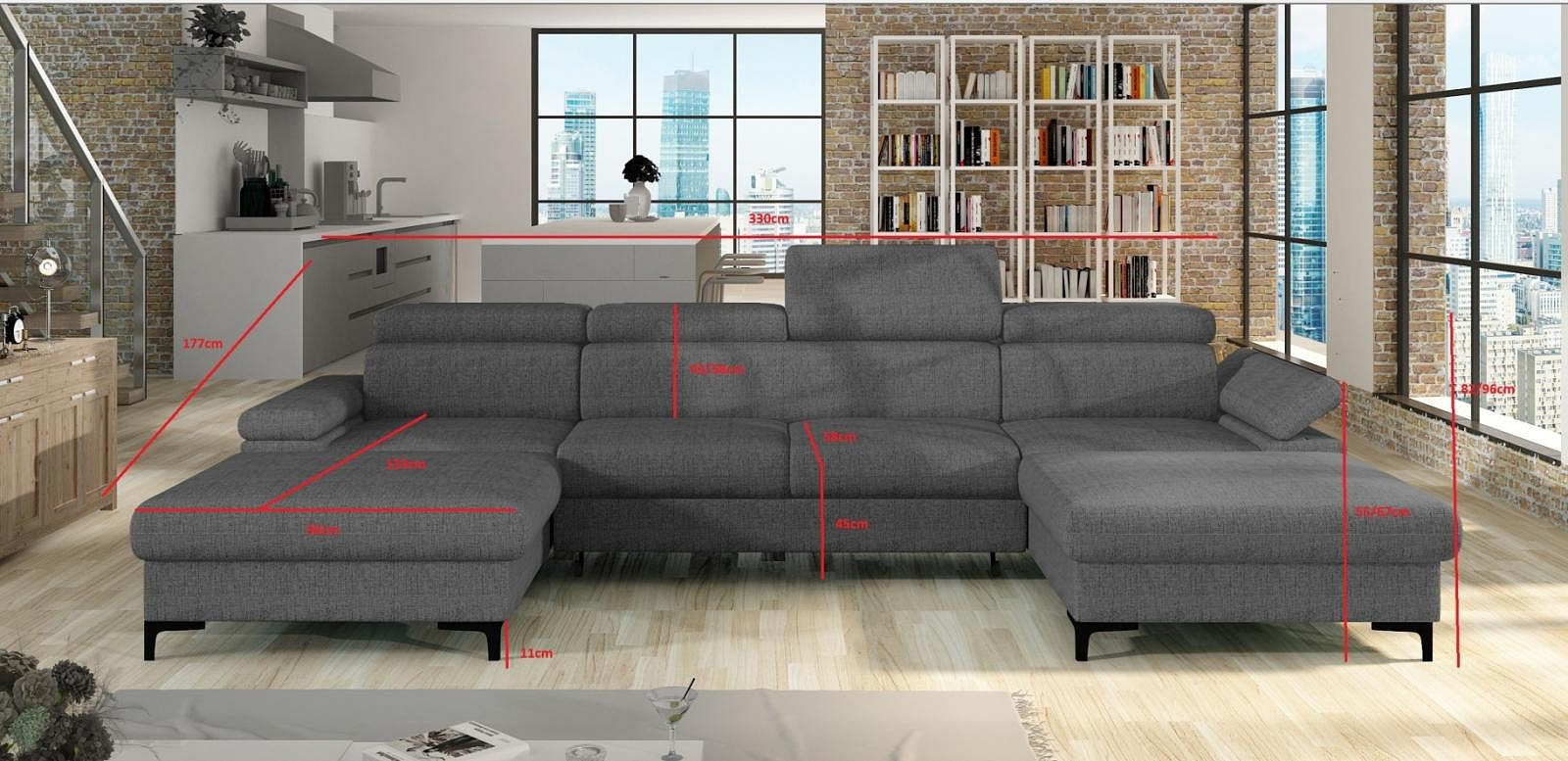Sedací souprava Apolena ve tvaru U nabízí nadstandardní prostor k sezení, vysoký komfort a praktické využití pro každodenní odpočinek. Konstrukce je tvořena kostrou s pružinami a kvalitní PUR pěnou, což spolu s výplní sedáků zajišťuje pohodlné a dlouhodobé sezení.