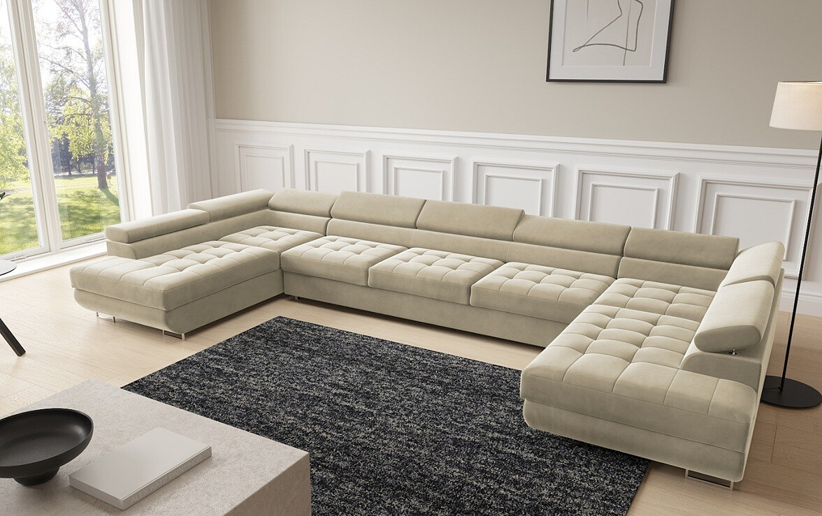 Sedací souprava BENJAMIN U 158 XL je mistrovským dílem moderního designu. Její tvar do "U" poskytuje dostatek prostoru pro celou rodinu nebo přátele, a to bez kompromisů na pohodlí. Sedák je vyroben z kvalitní pěny a pružin falistych, což zajišťuje optimální podporu a komfort při sezení. Nastavitelné opěrky hlavy přidávají další úroveň pohodlí, umožňující vám relaxovat přesně tak, jak si přejete.