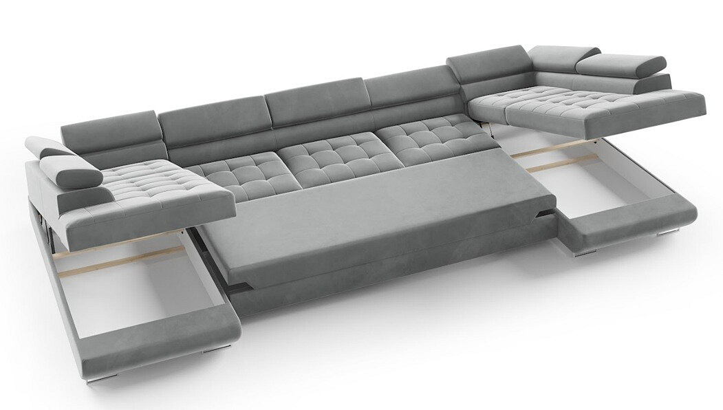 Tato sedací souprava není jen o vzhledu. Je vybavena rozkládací funkcí, která snadno promění pohovku na prostorné lůžko s plochou na spaní o rozměrech 320 x 123 cm. To je ideální pro hosty nebo pro ty, kteří si chtějí dopřát pohodlný odpočinek. Navíc, s dvěma úložnými prostory, máte dostatek místa pro uložení přikrývek, polštářů nebo jiných potřebných věcí, což pomáhá udržet váš obývací prostor čistý a organizovaný.