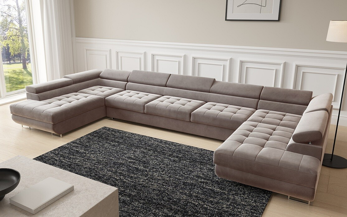 Sedací souprava BENJAMIN U 158 XL je mistrovským dílem moderního designu. Její tvar do "U" poskytuje dostatek prostoru pro celou rodinu nebo přátele, a to bez kompromisů na pohodlí. Sedák je vyroben z kvalitní pěny a pružin falistych, což zajišťuje optimální podporu a komfort při sezení. Nastavitelné opěrky hlavy přidávají další úroveň pohodlí, umožňující vám relaxovat přesně tak, jak si přejete.