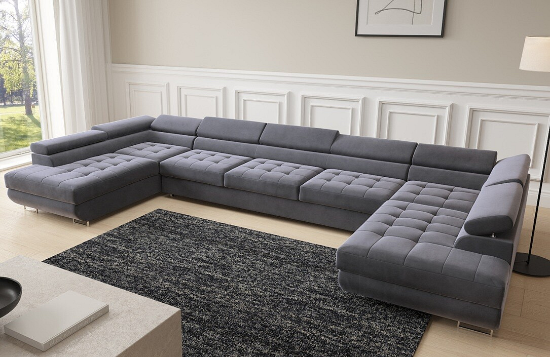Sedací souprava BENJAMIN U 158 XL je mistrovským dílem moderního designu. Její tvar do "U" poskytuje dostatek prostoru pro celou rodinu nebo přátele, a to bez kompromisů na pohodlí. Sedák je vyroben z kvalitní pěny a pružin falistych, což zajišťuje optimální podporu a komfort při sezení. Nastavitelné opěrky hlavy přidávají další úroveň pohodlí, umožňující vám relaxovat přesně tak, jak si přejete.