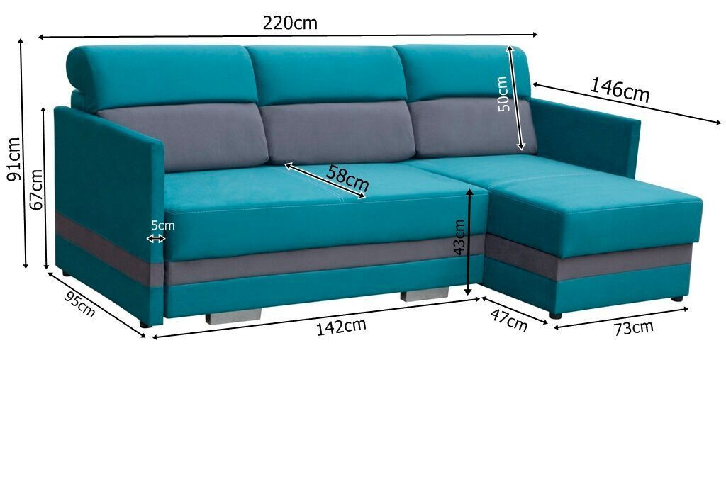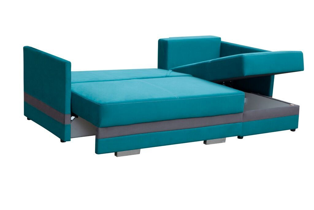 Elegantní rohová sedací souprava Berry je rozkládací a má také praktický úložný prostor. Díky svým rozměrům je vhodná i do menších pokojů. Jednoduchým rozložením pomocí automatu, vznikne dostatečně velké lůžko vhodné k příležitostnému spaní. Výplň sedáku tvoří kombinace pružin bonell a faliste s kvalitní PUR pěnou. Tato kombinace zajistí velmi pohodlné sezení. Sedací souprava je potažena kvalitní látkou v kombinaci 2 barev, a to v několika odstínech. V ceně sedací soupravy jsou 3 velké opěrné polštáře. Ostatní vyobrazené dekorace nejsou v ceně.