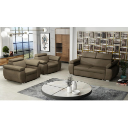 Sedací souprava Bodie je vyrobena v jednoduchém elegantním designu, který se hodí do všech interiérů. Sedací souprava je potažena kvalitní látkou Paros, která je sametově hebká a nežmolkovatí. Je odolná proti UV záření, takže udržuje stálost barev i při denním světle. Sedací soupravu nabízíme v několika odstínech této látky. Výplň sedáků tvoří kombinace vlnitých pružin s kvalitní HR pěnou. Pro pohodlí při sezení a odpočinku, je sedací souprava vybavena polohovacími opěrkami hlavy. Cena je uvedena za sestavu 3+1+1. Vyobrazené doplňky a dekorace nejsou v ceně. Zobrazení barev na fotografii se může od skutečnosti lišit.