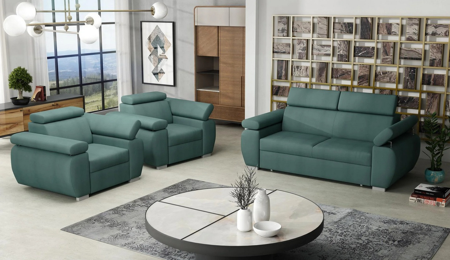 Sedací souprava Bodie je vyrobena v jednoduchém elegantním designu, který se hodí do všech interiérů. Sedací souprava je potažena kvalitní látkou Kronos, která je sametově hebká a jemná, má třpytivý odlesk, je odolná proti vyblednutí a nežmolkovatí. Tento potahový materiál zanechává na povrchu stopy podle toho, jakým směrem se položí krátký vlas. Sedací soupravu nabízíme v několika odstínech této látky. Výplň sedáků tvoří kombinace vlnitých pružin s kvalitní HR pěnou. Pro pohodlí při sezení a odpočinku, je sedací souprava vybavena polohovacími opěrkami hlavy. Cena je uvedena za sestavu 3+1+1. Vyobrazené doplňky a dekorace nejsou v ceně. Zobrazení barev na fotografii se může od skutečnosti lišit.