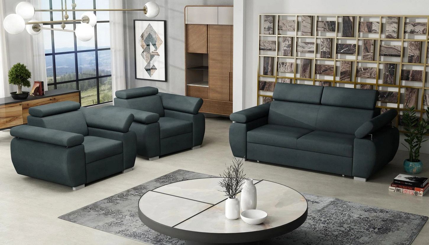Sedací souprava Bodie je vyrobena v jednoduchém elegantním designu, který se hodí do všech interiérů. Sedací souprava je potažena kvalitní látkou Paros, která je sametově hebká a nežmolkovatí. Je odolná proti UV záření, takže udržuje stálost barev i při denním světle. Sedací soupravu nabízíme v několika odstínech této látky. Výplň sedáků tvoří kombinace vlnitých pružin s kvalitní HR pěnou. Pro pohodlí při sezení a odpočinku, je sedací souprava vybavena polohovacími opěrkami hlavy. Cena je uvedena za sestavu 3+1+1. Vyobrazené doplňky a dekorace nejsou v ceně. Zobrazení barev na fotografii se může od skutečnosti lišit.
