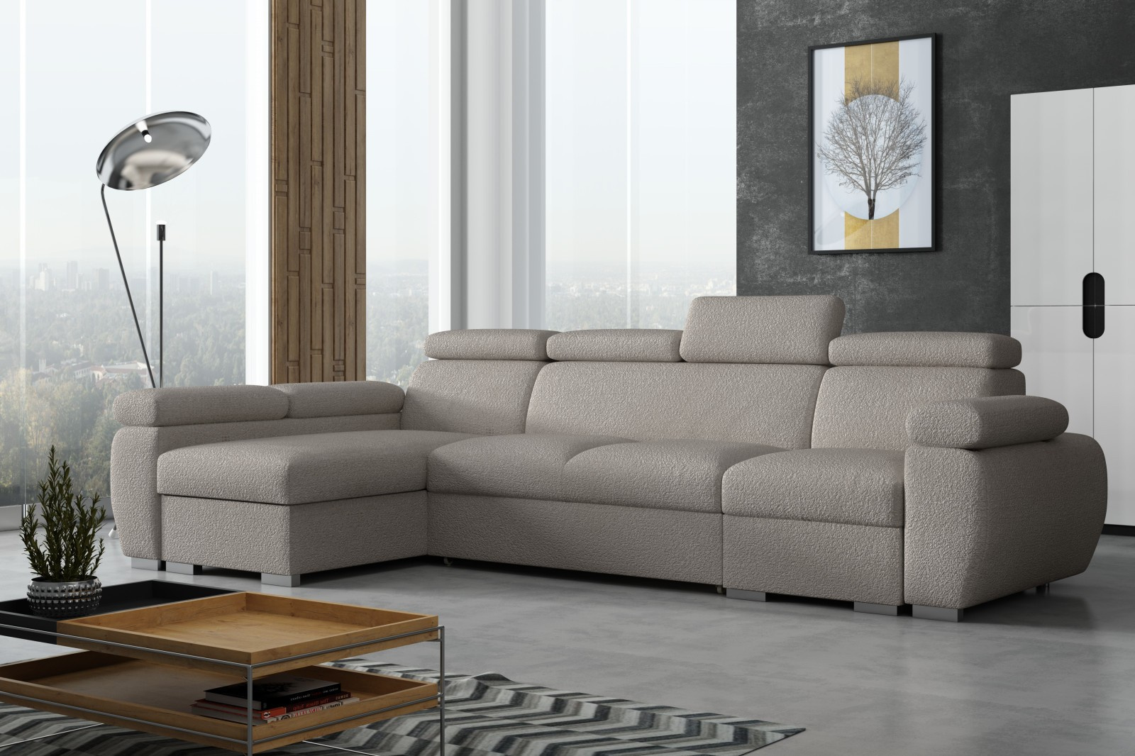 Sedací souprava Bodie se stane příjemným centrem odpočinku, nebo setkání s rodinou a přáteli. Je velmi pohodlná, praktická a nabízí dostatek místa k sezení. Praktickou stránkou sedací soupravy je možnost rozložení k příležitostnému přespání a také nepostradatelný úložný prostor. Pohodlí při sezení zajišťuje výplň sedáků, kterou tvoří kombinace vlnitých pružin s kvalitní PUR pěnou. Při odpočinku, nebo sledování televize Vám zvýší pohodlí polohovací opěrky. Sedací souprava je potažena kvalitní látkou Anthology, která je originální a extrémně měkká, se specifickou bouclé texturou. Látka se snadno čistí a udržuje v perfektním stavu. Sedací soupravu nabízíme v levém i pravém provedení. Vyobrazené doplňky a dekorace nejsou v ceně. Fotografie sedací soupravy v rozkladu jsou pouze ilustrační. Správný barevný odstín je zobrazen na úvodní fotografii.