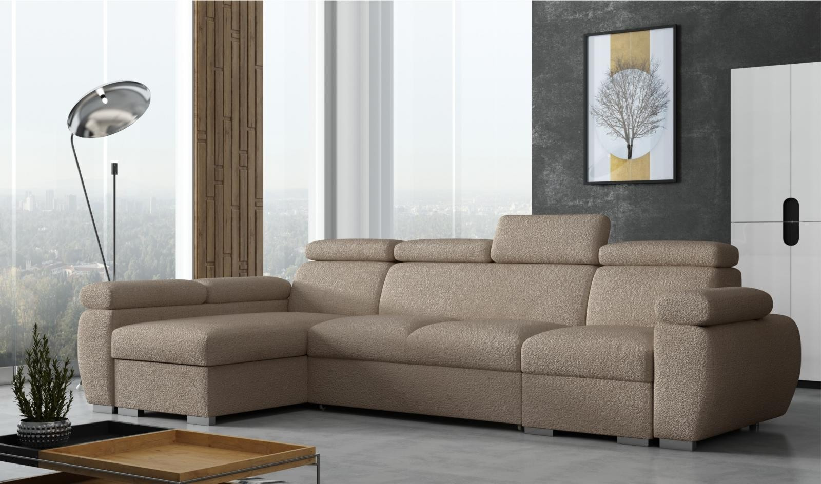 Sedací souprava Bodie se stane příjemným centrem odpočinku, nebo setkání s rodinou a přáteli. Je velmi pohodlná, praktická a nabízí dostatek místa k sezení. Praktickou stránkou sedací soupravy je možnost rozložení k příležitostnému přespání a také nepostradatelný úložný prostor. Pohodlí při sezení zajišťuje výplň sedáků, kterou tvoří kombinace vlnitých pružin s kvalitní PUR pěnou. Při odpočinku, nebo sledování televize Vám zvýší pohodlí polohovací opěrky. Sedací souprava je potažena kvalitní látkou Anthology, která je originální a extrémně měkká, se specifickou bouclé texturou. Látka se snadno čistí a udržuje v perfektním stavu. Sedací soupravu nabízíme v levém i pravém provedení. Vyobrazené doplňky a dekorace nejsou v ceně. Fotografie sedací soupravy v rozkladu jsou pouze ilustrační. Správný barevný odstín je zobrazen na úvodní fotografii.