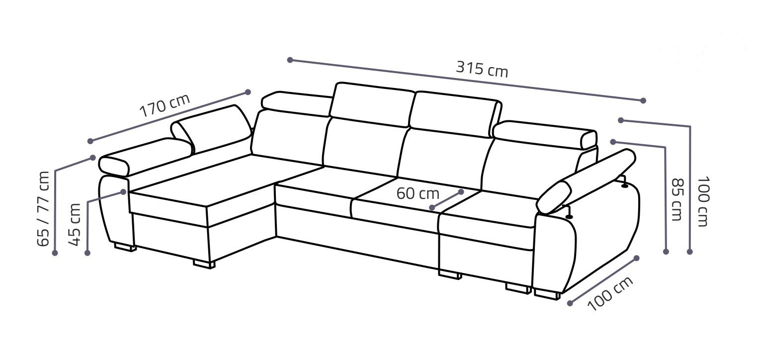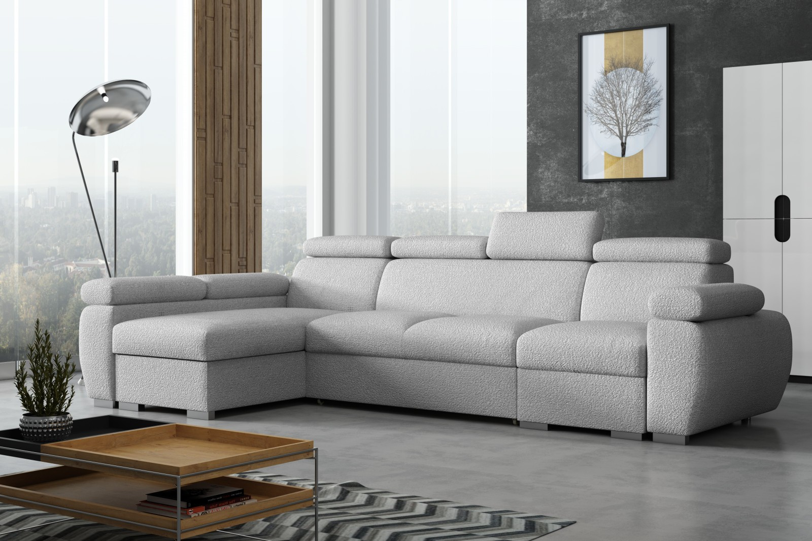Sedací souprava Bodie se stane příjemným centrem odpočinku, nebo setkání s rodinou a přáteli. Je velmi pohodlná, praktická a nabízí dostatek místa k sezení. Praktickou stránkou sedací soupravy je možnost rozložení k příležitostnému přespání a také nepostradatelný úložný prostor. Pohodlí při sezení zajišťuje výplň sedáků, kterou tvoří kombinace vlnitých pružin s kvalitní PUR pěnou. Při odpočinku, nebo sledování televize Vám zvýší pohodlí polohovací opěrky. Sedací souprava je potažena kvalitní látkou Anthology, která je originální a extrémně měkká, se specifickou bouclé texturou. Látka se snadno čistí a udržuje v perfektním stavu. Sedací soupravu nabízíme v levém i pravém provedení. Vyobrazené doplňky a dekorace nejsou v ceně. Fotografie sedací soupravy v rozkladu jsou pouze ilustrační. Správný barevný odstín je zobrazen na úvodní fotografii.