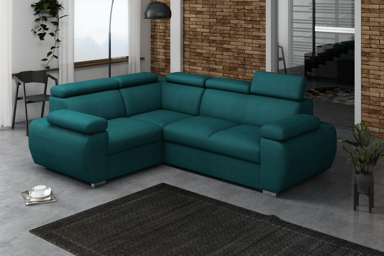 Sedací souprava Bodie se stane příjemným centrem odpočinku, nebo setkání s rodinou a přáteli. Je velmi pohodlná, praktická a nabízí dostatek místa k sezení. Praktickou stránkou sedací soupravy je možnost rozložení k příležitostnému přespání a také nepostradatelný úložný prostor. Pohodlí při sezení zajišťuje výplň sedáků, kterou tvoří kombinace pružin s kvalitní PUR pěnou. Při odpočinku, nebo sledování televize Vám zvýší pohodlí polohovací opěrky. Sedací souprava je potažena kvalitní látkou a bude dodána v barevné variantě, která je na úvodní fotografii. Sedací soupravu nabízíme v levém i pravém provedení. Vyobrazené doplňky a dekorace nejsou v ceně.