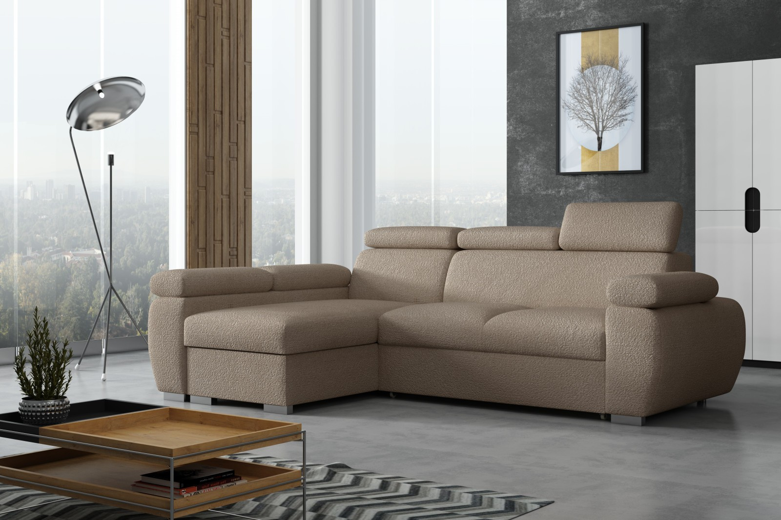 Sedací souprava Bodie se stane příjemným centrem odpočinku, nebo setkání s rodinou a přáteli. Je velmi pohodlná, praktická a nabízí dostatek místa k sezení. Praktickou stránkou sedací soupravy je možnost rozložení k příležitostnému přespání a také nepostradatelný úložný prostor. Pohodlí při sezení zajišťuje výplň sedáků, kterou tvoří kombinace vlnitých pružin s kvalitní PUR pěnou. Při odpočinku, nebo sledování televize Vám zvýší pohodlí polohovací opěrky. Sedací souprava je potažena kvalitní látkou Anthology, která je originální a extrémně měkká, se specifickou bouclé texturou. Látka se snadno čistí a udržuje v perfektním stavu. Sedací soupravu nabízíme v levém i pravém provedení. Vyobrazené doplňky a dekorace nejsou v ceně. Fotografie sedací soupravy v rozkladu jsou pouze ilustrační. Správný barevný odstín je zobrazen na úvodní fotografii.
