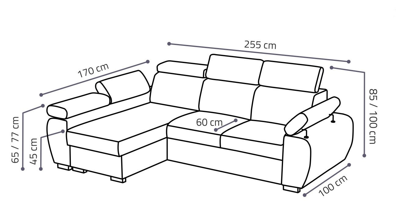 Sedací souprava Bodie se stane příjemným centrem odpočinku, nebo setkání s rodinou a přáteli. Je velmi pohodlná, praktická a nabízí dostatek místa k sezení. Praktickou stránkou sedací soupravy je možnost rozložení k příležitostnému přespání a také nepostradatelný úložný prostor. Pohodlí při sezení zajišťuje výplň sedáků, kterou tvoří kombinace vlnitých pružin s kvalitní PUR pěnou. Při odpočinku, nebo sledování televize Vám zvýší pohodlí polohovací opěrky. Sedací souprava je potažena kvalitní látkou Aragon, která je vyrobena z vysoce kvalitní příze, extrémně měkká a příjemná na dotek. Tato tkanina je odolná před pronikáním vlhkosti a tekutin. Látka se snadno čistí a udržuje v perfektním stavu. Sedací soupravu nabízíme v levém i pravém provedení. Vyobrazené doplňky a dekorace nejsou v ceně. Fotografie sedací soupravy v rozkladu jsou pouze ilustrační. Správný barevný odstín je zobrazen na úvodní fotografii.